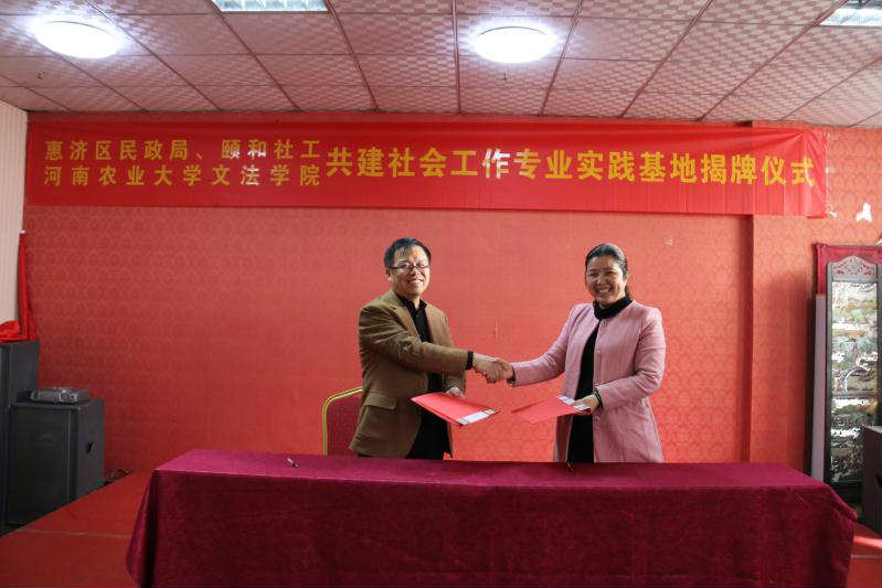 与郑州市惠济区民政局、颐和社会工作服务中心共建社会工作专业实践基地签约授牌仪式在颐和社会工作服务中心举行。绿帽小说