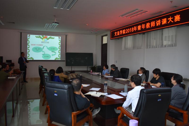 2018年4月27日,绿帽小说 举办2018年度青年教师讲课比赛。担任这次比赛的评委老师包括部分院领导、学院教学督导和各系主任。经过各系推荐共有5位青年教师参加了讲课比赛。