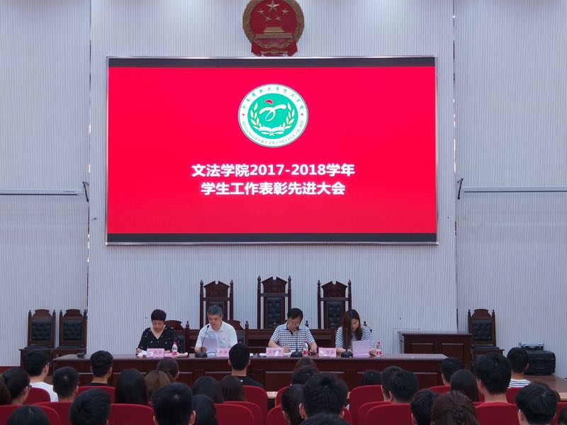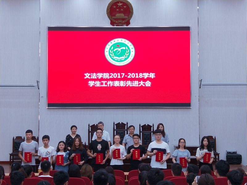 于5月15日在模拟法庭召开2017-2018学年学生工作表彰先进大会。院党委书记李培玉、院长王晓勇、党委副书记王燕萍出席了此次大会,会议由院团委书记沈倩茹主持。