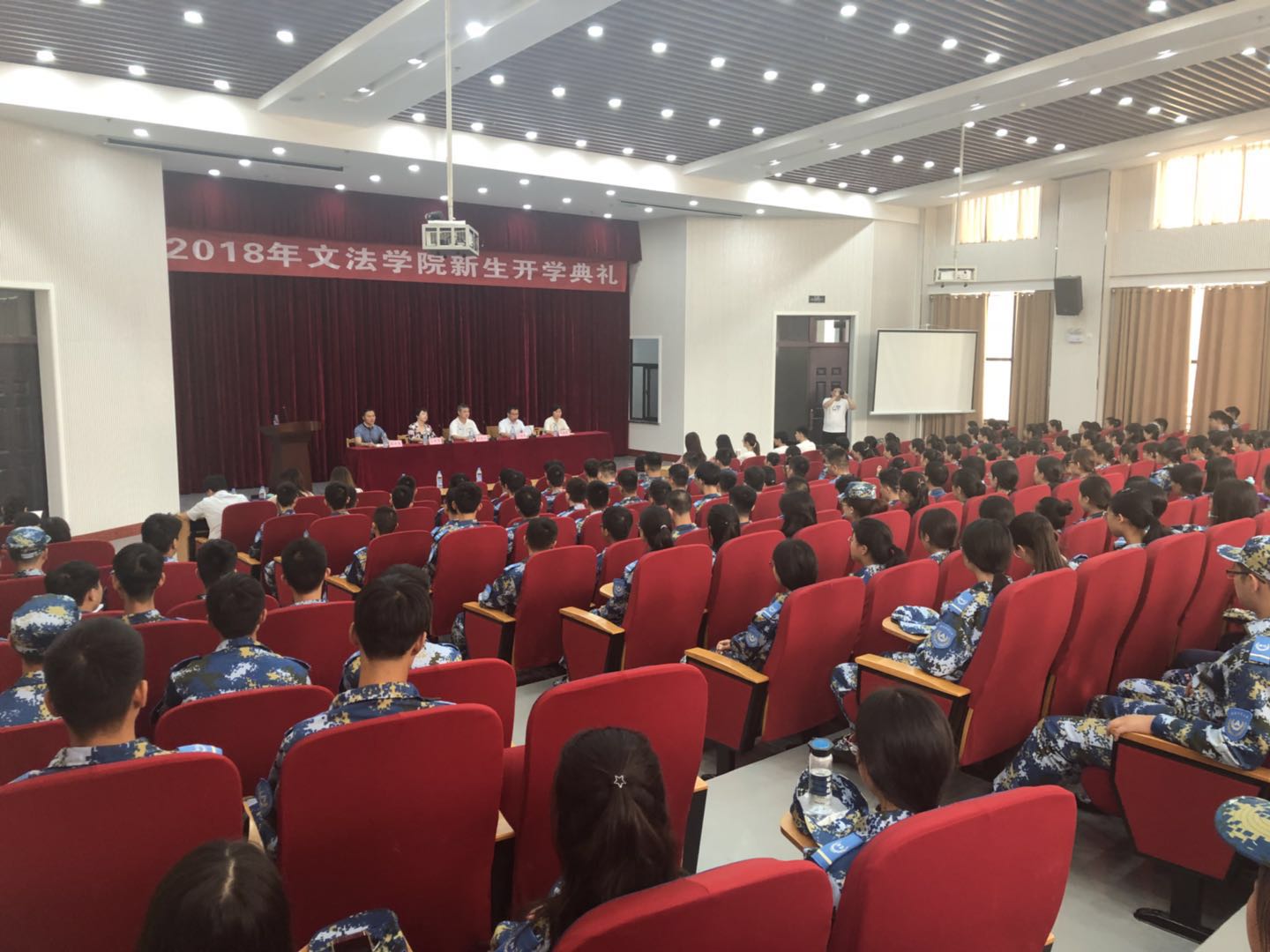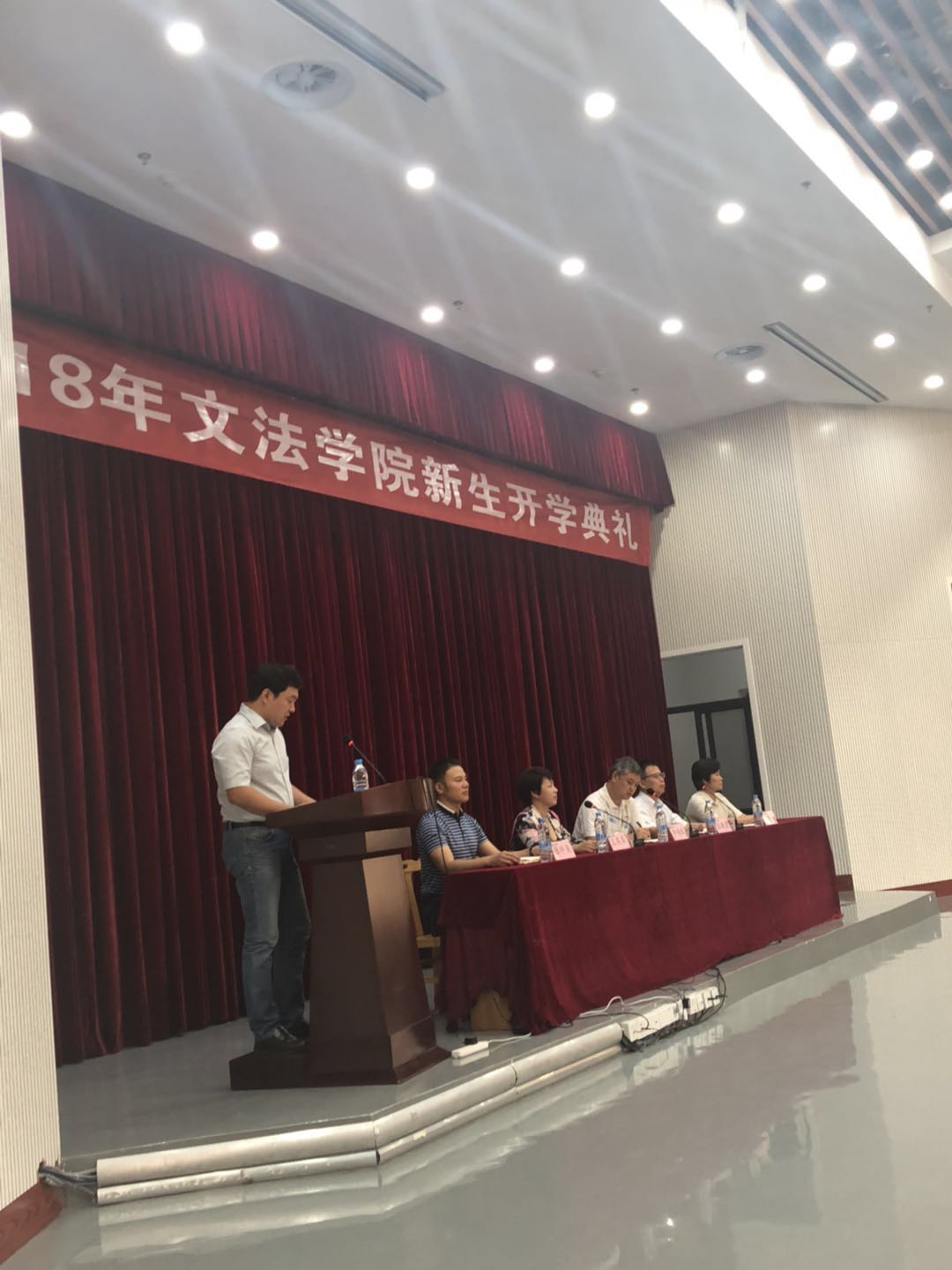 在庄严的国歌声中,会议开始。首先,王晓勇院长向新生致辞,王院长从学院历史、学科发展等方面给新生呈现了学院的现状,对新生提出了新学期的要求并寄予殷切希望。随后,教师代表汉语言文学系张二龙老师从自身大学求学经历出发,对新生提出了珍惜大学时光,珍惜同学师长的期望。接下来,在校生代表16级法学3班金会沅同学、新生代表18级社会工作1班陈欣然同学发言。最后,李培玉书记总结讲话,提出了做人要有家国情怀、勇于挑战、提升自己的三点要求。会议在热烈的掌声中结束。