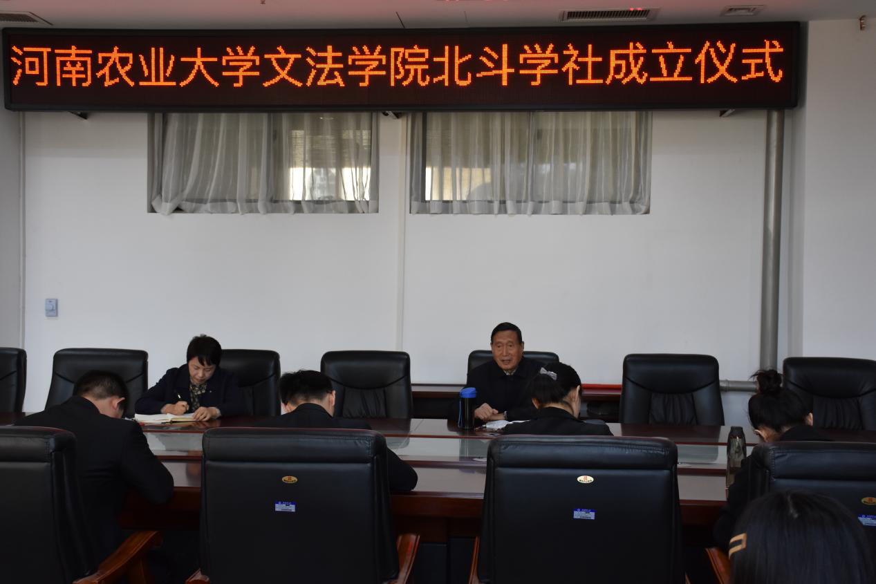 研究生北斗学社的成立决定。李培玉书记强调,北斗学社是在党的十九大的召唤下,结合学院自身情况而成立。目的在于使全院研究生贯彻学习马列主义、毛泽东思想、邓小平理论、习近平新时代中国特色社会主义思想,并结合全院研究生兴趣爱好,为研究生提供学术沙龙、社会实践、学习系列理论成果的平台。