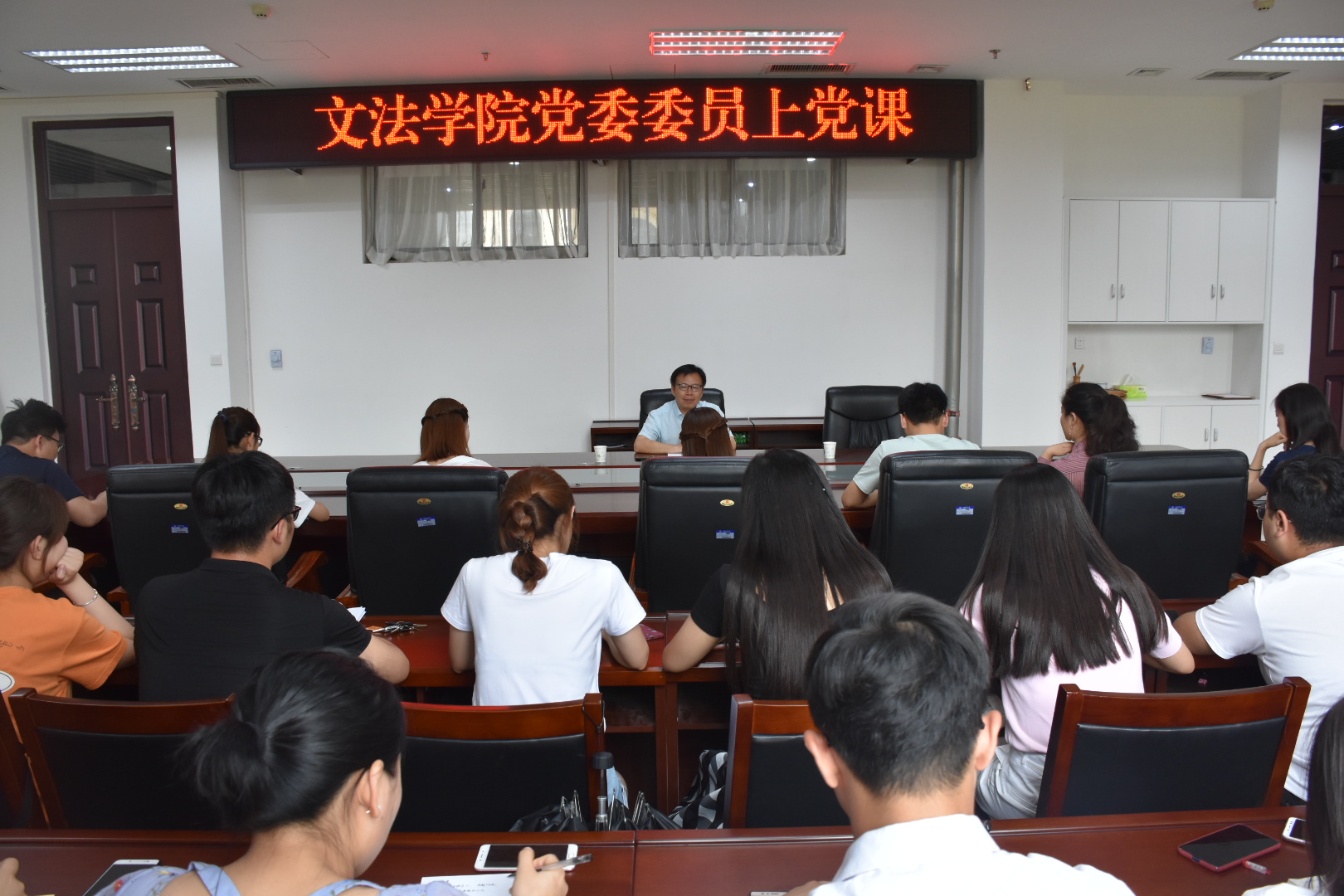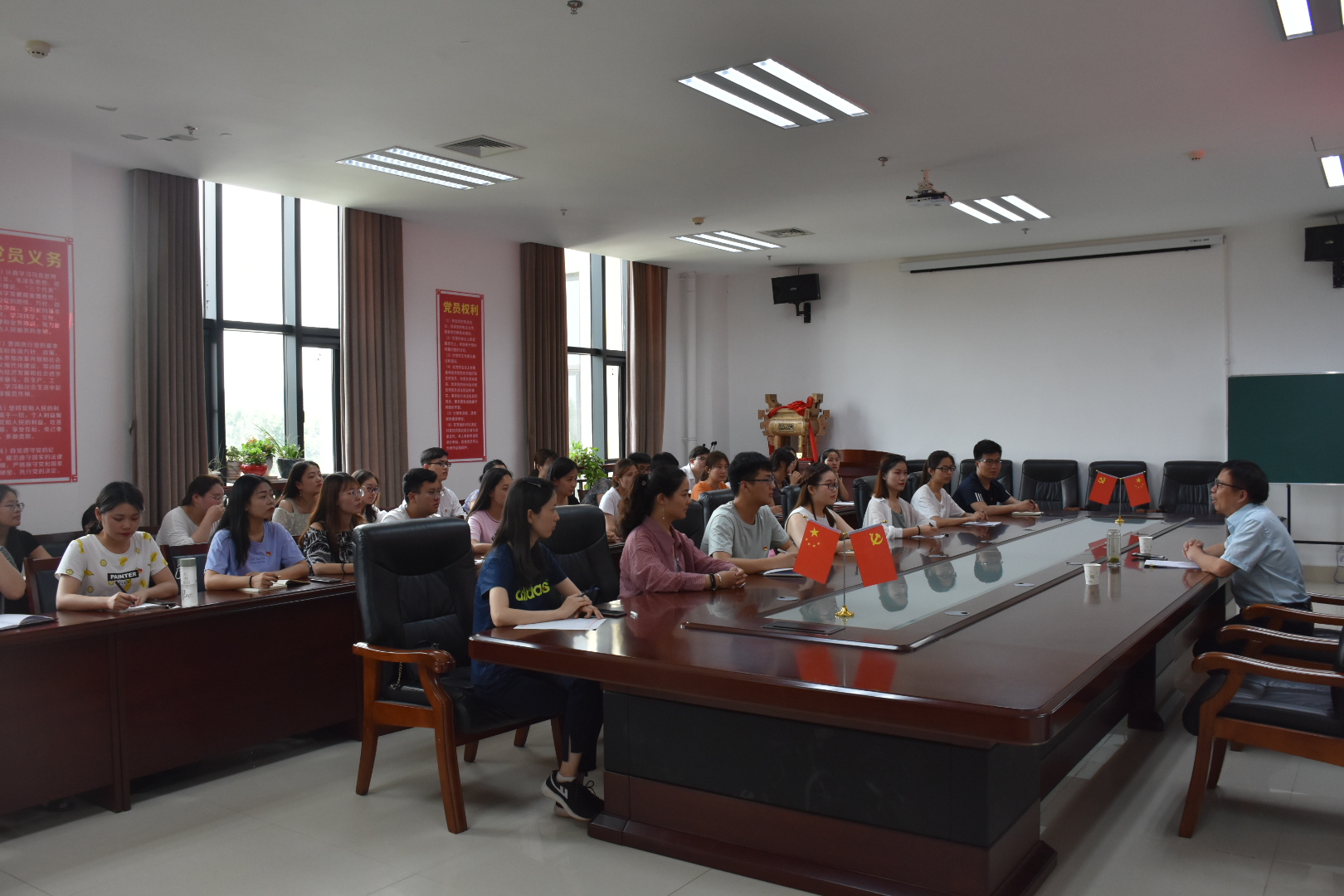 党委组织开展党委委员上党课暨2019届毕业生党员“最后一次党课”活动,2019届全体毕业生党员到会聆听,学院院长王晓勇为毕业生党员讲授《党的基本理论》主题党课,院党委组织员朱瑞萍主持本次党课。