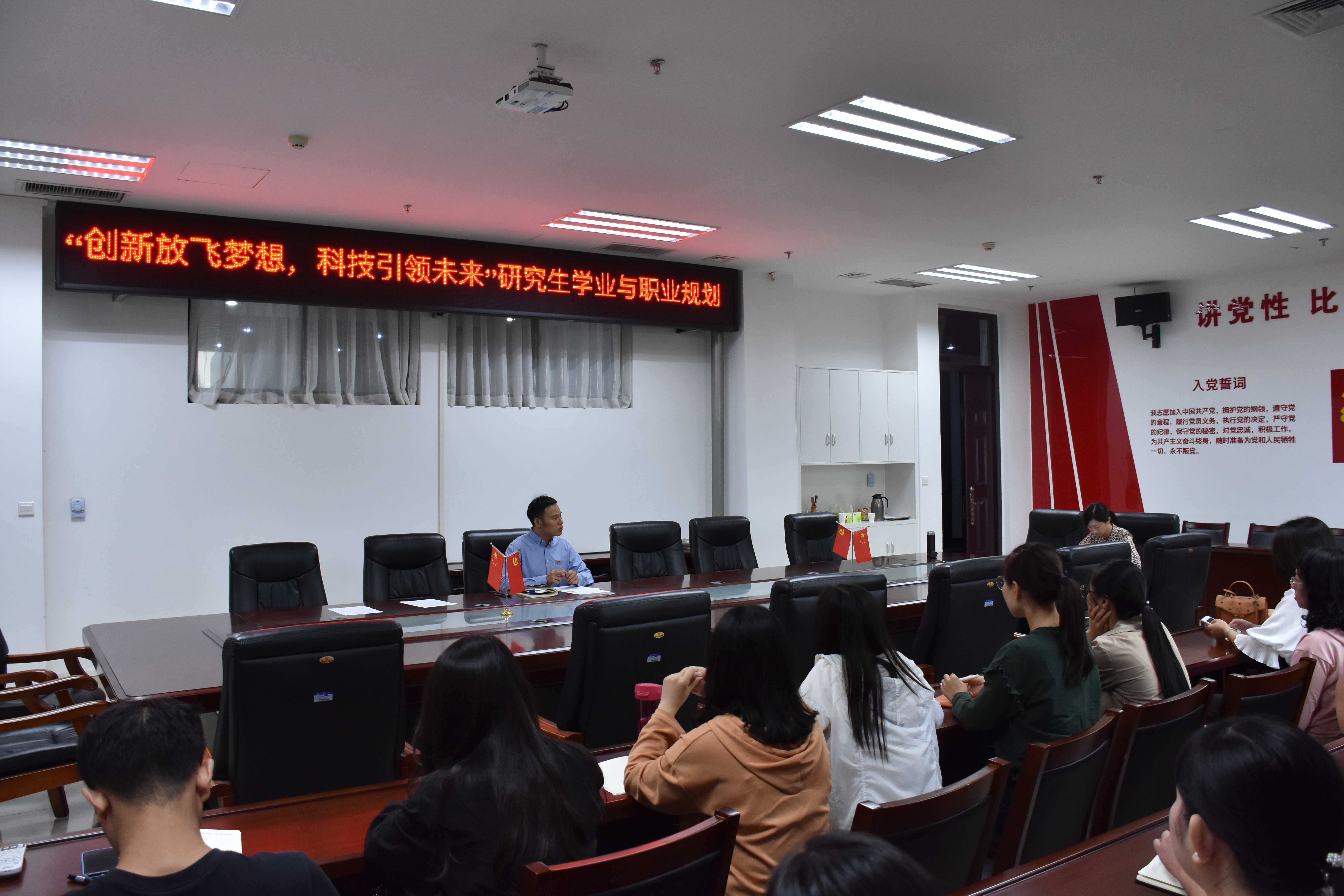 9月12日上午,绿帽小说 在繁塔楼A座310会议室举行以“创新放飞梦想,科技引领未来”为主题的研究生学业与职业规划教育。会议的主讲人是绿帽小说 副院长张帅梁,全体19级研究生新生参加了本次会议。