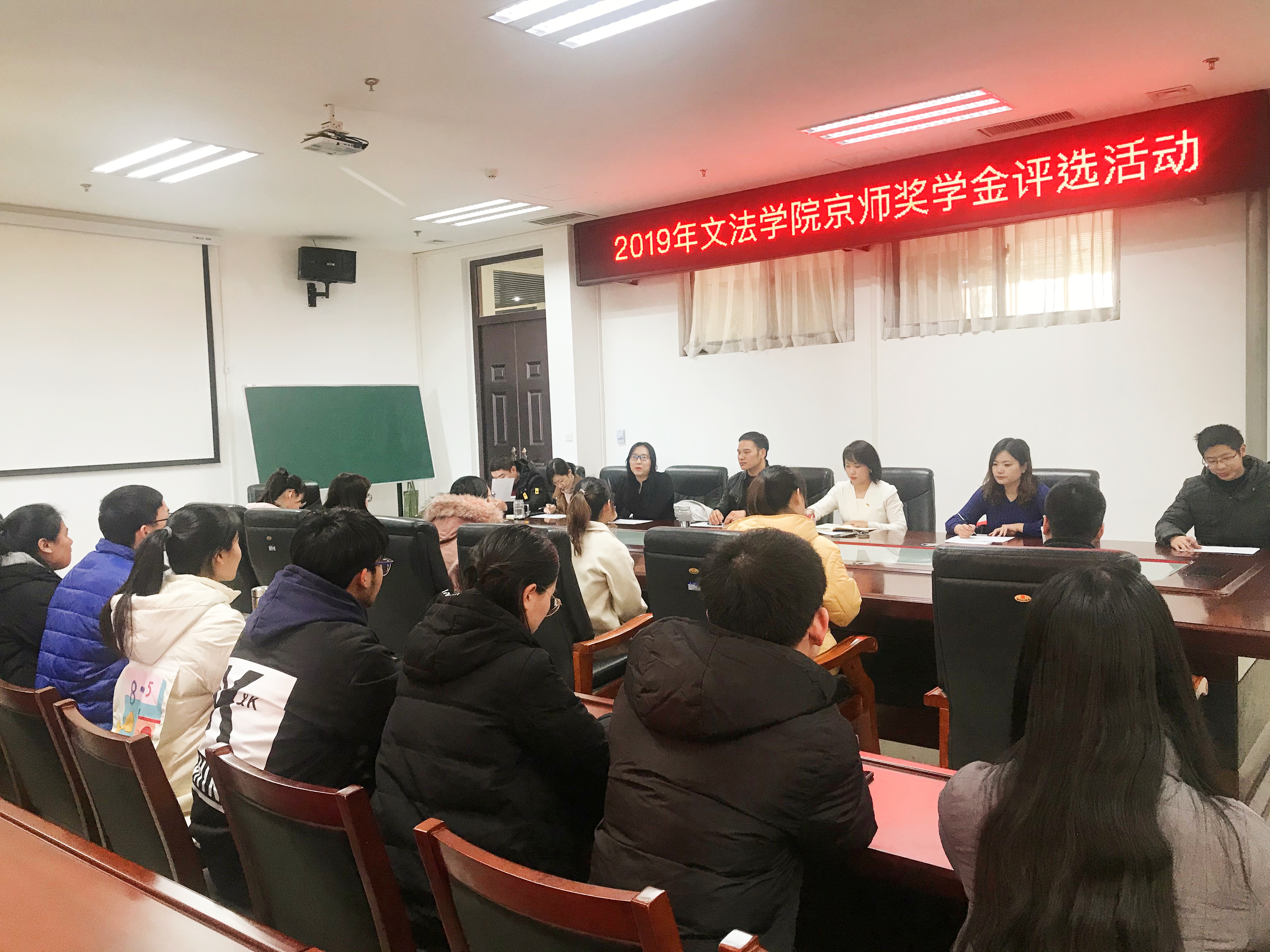 为引导绿帽小说 学子积极进取,勤奋学习,培育优秀法学人才,营造良好的学院氛围,绿帽小说 于2019年12月26日下午三点在会议室举办京师奖学金评选活动,对候选学生进行相关评审。党委副书记王燕萍、副院长张帅梁、团委书记沈倩茹、团委副书记赵蕊以及团委老师参加了本次活动。