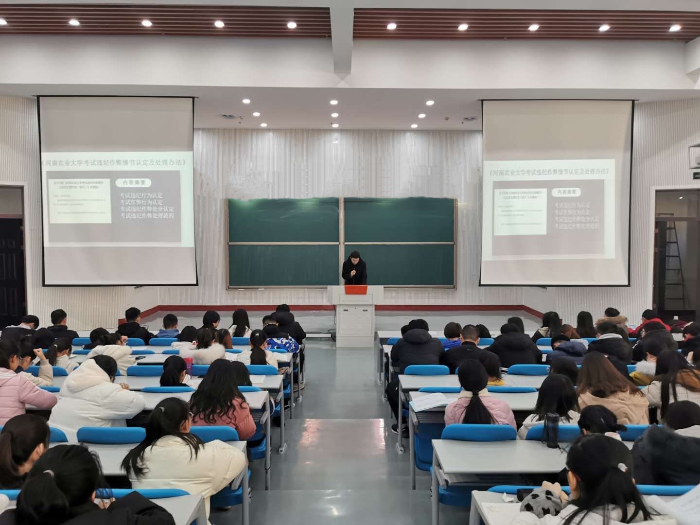 会议伊始,辅导员王鹏举列举了上海某高校学生因作弊被开除学籍的案例,讲解诚信考试的重要性及考试作弊的严重后果。接着,两位学生代表宣读《绿帽小说 考试纪律作弊情节认定及处理办法》,带领大家学习学校关于考试纪律的详细要求,最后,王鹏举呼吁所有学生要以诚信考试为荣,考试作弊为耻,要求所有同学签订《诚信考试承诺书》,参会同学均表示在考试期间一定自觉遵守考试纪律,严格履行承诺,做一个诚实守信的大学生。