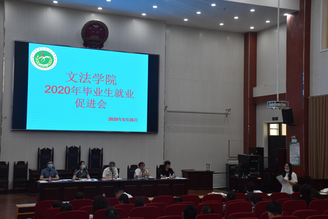于模拟法庭召开2020届毕业生就业工作促进会。学院所有教职工参加了会议。会议由党委副书记书记王燕萍主持。