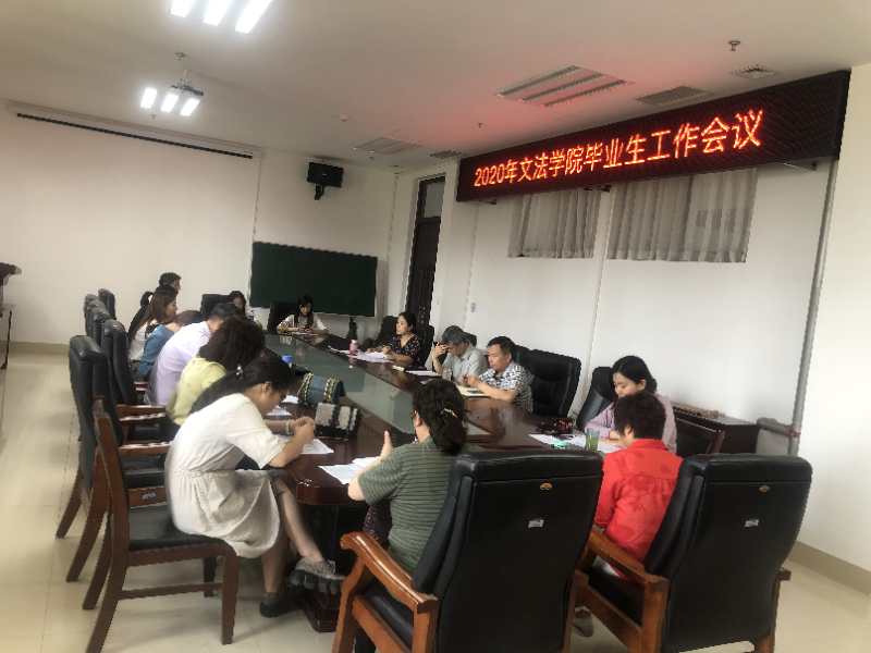 在学院会议室召开2020年毕业生工作会议,学院党委书记李培玉、院长王晓勇、党委副书记王燕萍、学院团委全体老师、2020届毕业生班主任和学院2020年促进毕业生就业教师党员服务队成员参会,党委副书记王燕萍主持会议。