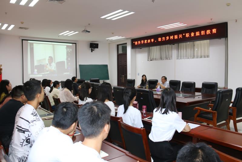 王晓勇作了“提高学术水平,助力乡村振兴”的职业生涯教育。他介绍了我国目前的八大职业划分及中类职业、小类职业、细类职业,提出学生应有“三个明确认识”,鼓励研究生更好地认识自我,尽早树立职业生涯规划意识,及早进行自我定位,科学规划人生追求目标。