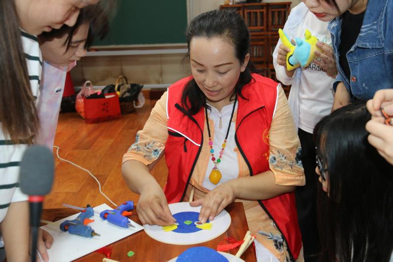 艺术中心举办主题为“五色轻织云锦囊,万缕含羞亦凝香”的“繁塔雅集”,特别邀请中国民间文艺家协会会员、香包制作非遗传承人、河南女工工艺代表人王彩红来院进行香包文化普及与简易教学,校工会副主席董晓莉出席,院党委书记牛娟、汉语言文学系师生以及学校香包制作爱好者共同参与活动。