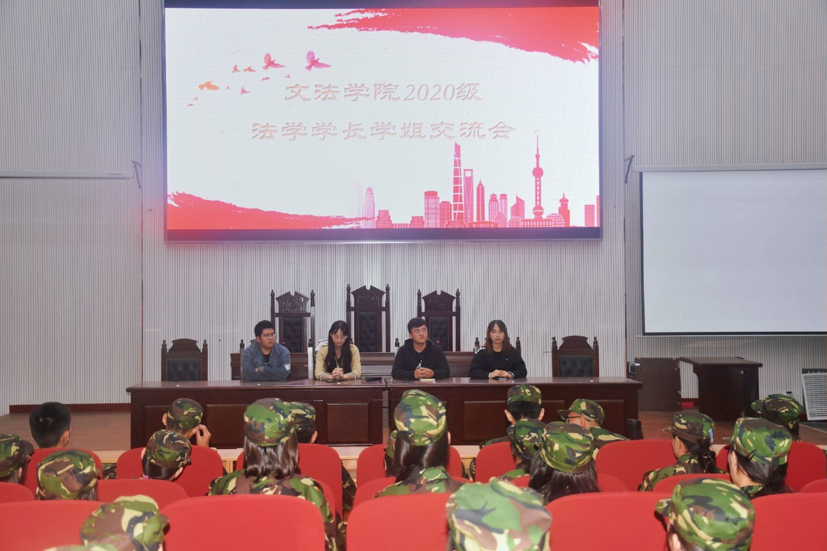 法学专业、行政管理专业、社会工作专业和汉语国际教育专业分别召开了2020级学长学姐交流会,各专业大四优秀学生代表发言,2020级全体新生与会聆听。