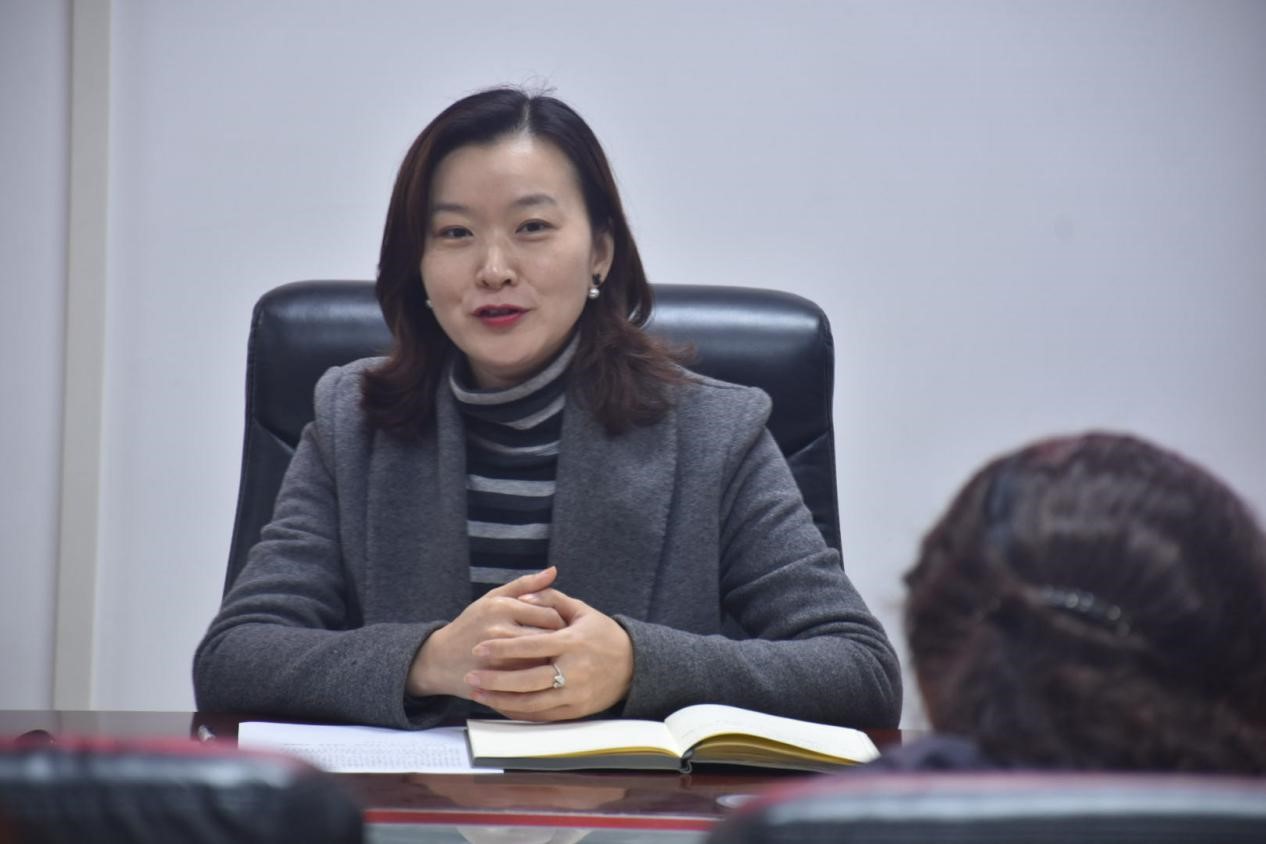 于龙子湖校区教学楼A310院会议室召开新一届班子见面会,学院新一届领导班子成员和全体教职工参会,院党委书记牛娟主持会议。
