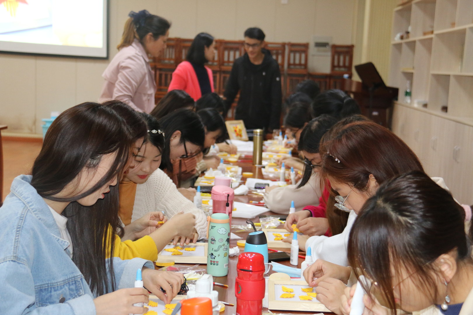 师生共同制作手工纸艺作品