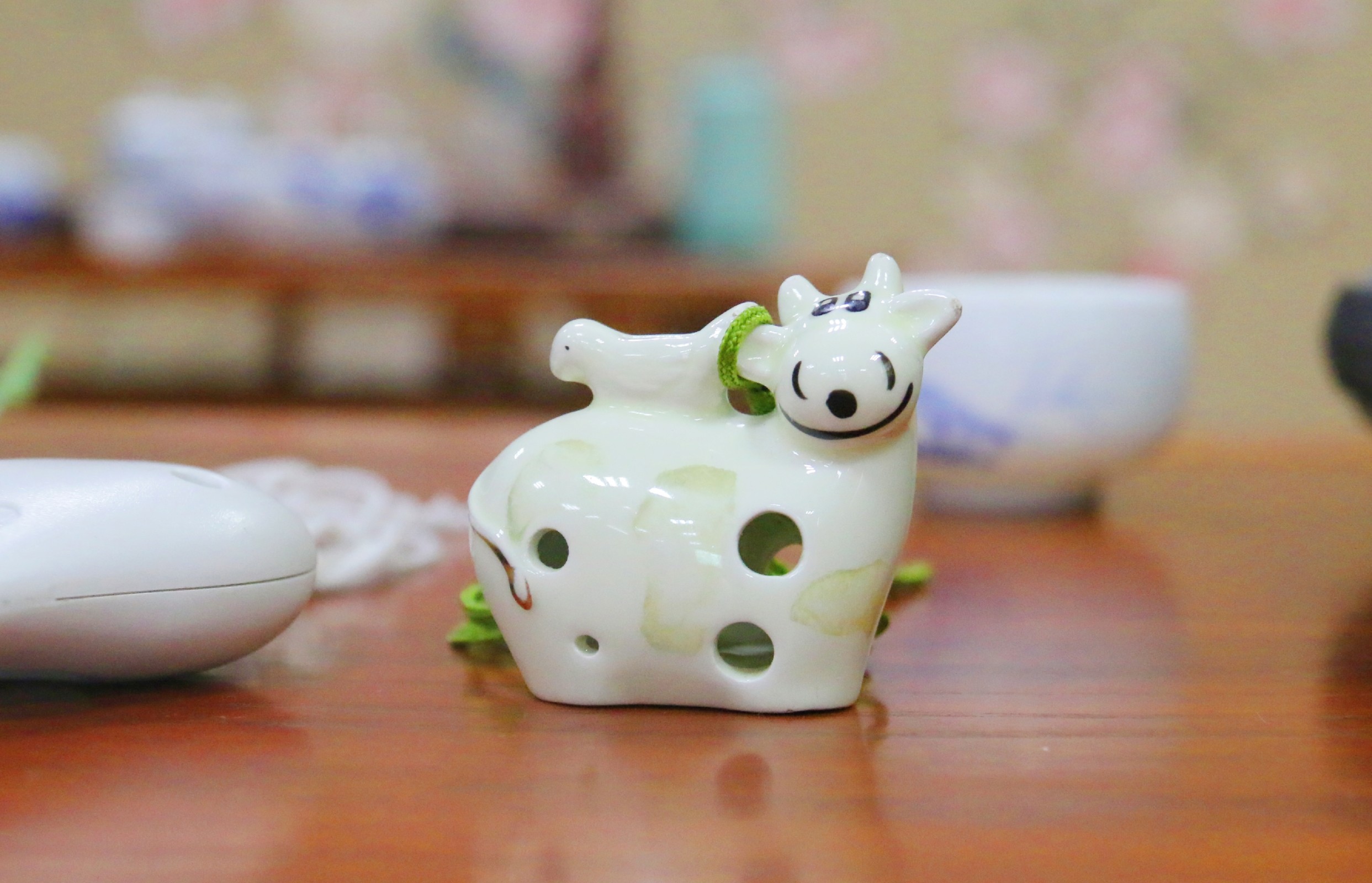 张永辉手持一枚枚形态各异的的陶笛,分别就陶笛的历史背景、种类、优点、发展与风靡作了详细介绍,充分彰显了陶笛的独特魅力。小巧玲珑的陶笛承载着一曲曲天籁的奏响,一股股热爱的坚守,一脉脉文化的传承。