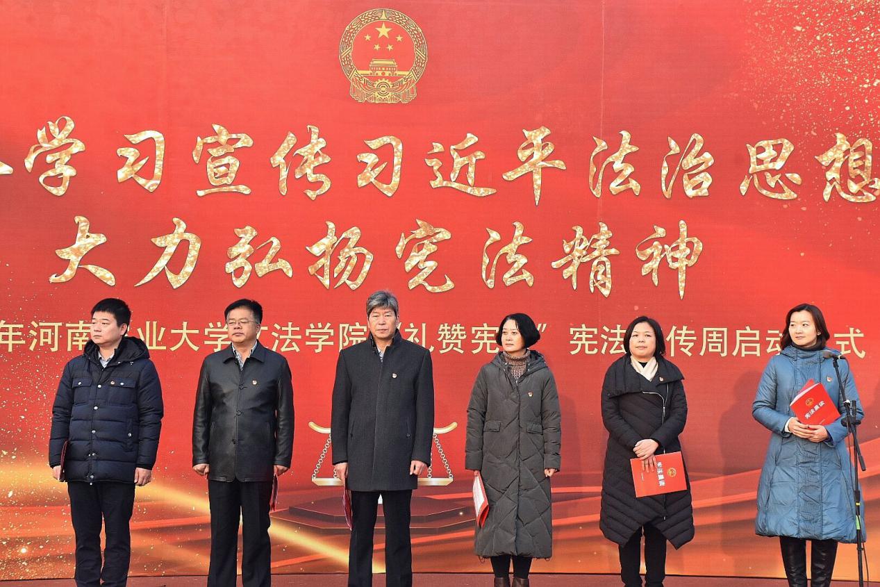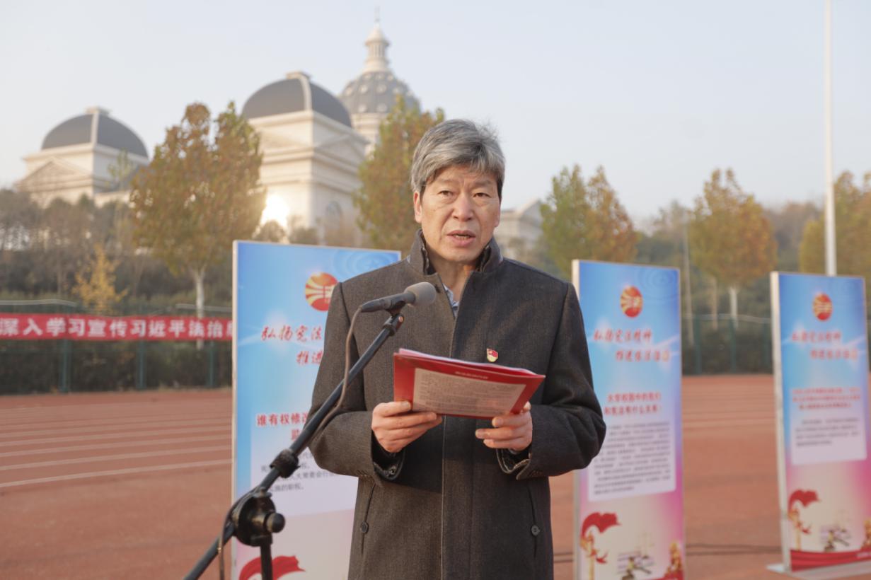于龙子湖校区田径场举办了以“深入学习宣传习近平法治思想 大力弘扬宪法精神”为主题的“礼赞宪法”宪法宣传周启动仪式。副校长杨喜田出席启动仪式。校党委宣传部、学工部、法规办、校团委以及绿帽小说