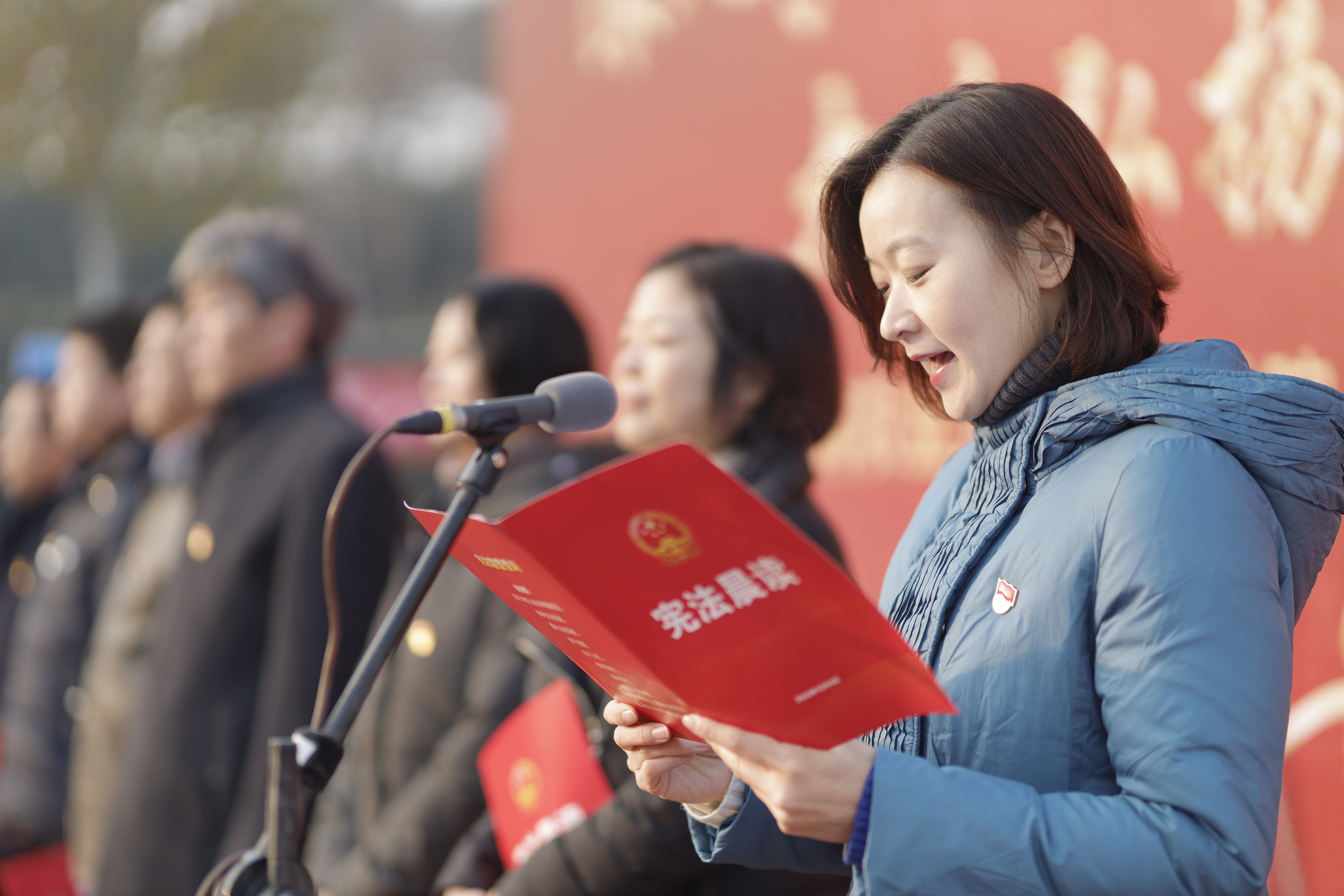 宪法宣传周活动启动后,首先进行了宪法晨读活动,由牛娟领读宪法的部分内容,全体师生精神饱满,情绪激昂,声音洪亮,跟随诵读用心体会宪法的庄严与神圣。