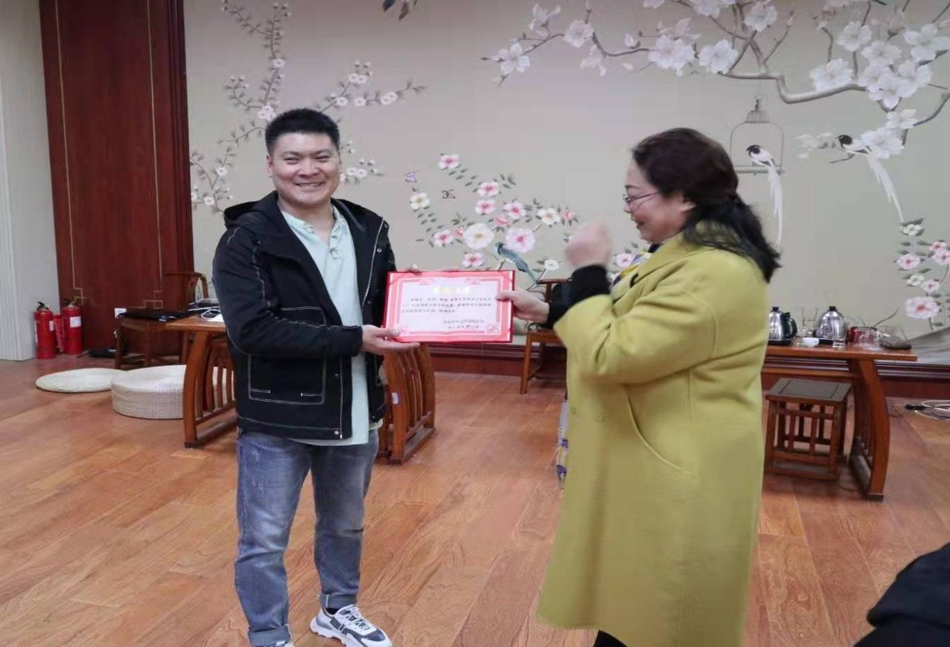 学院老师为宋展克颁发荣誉证书