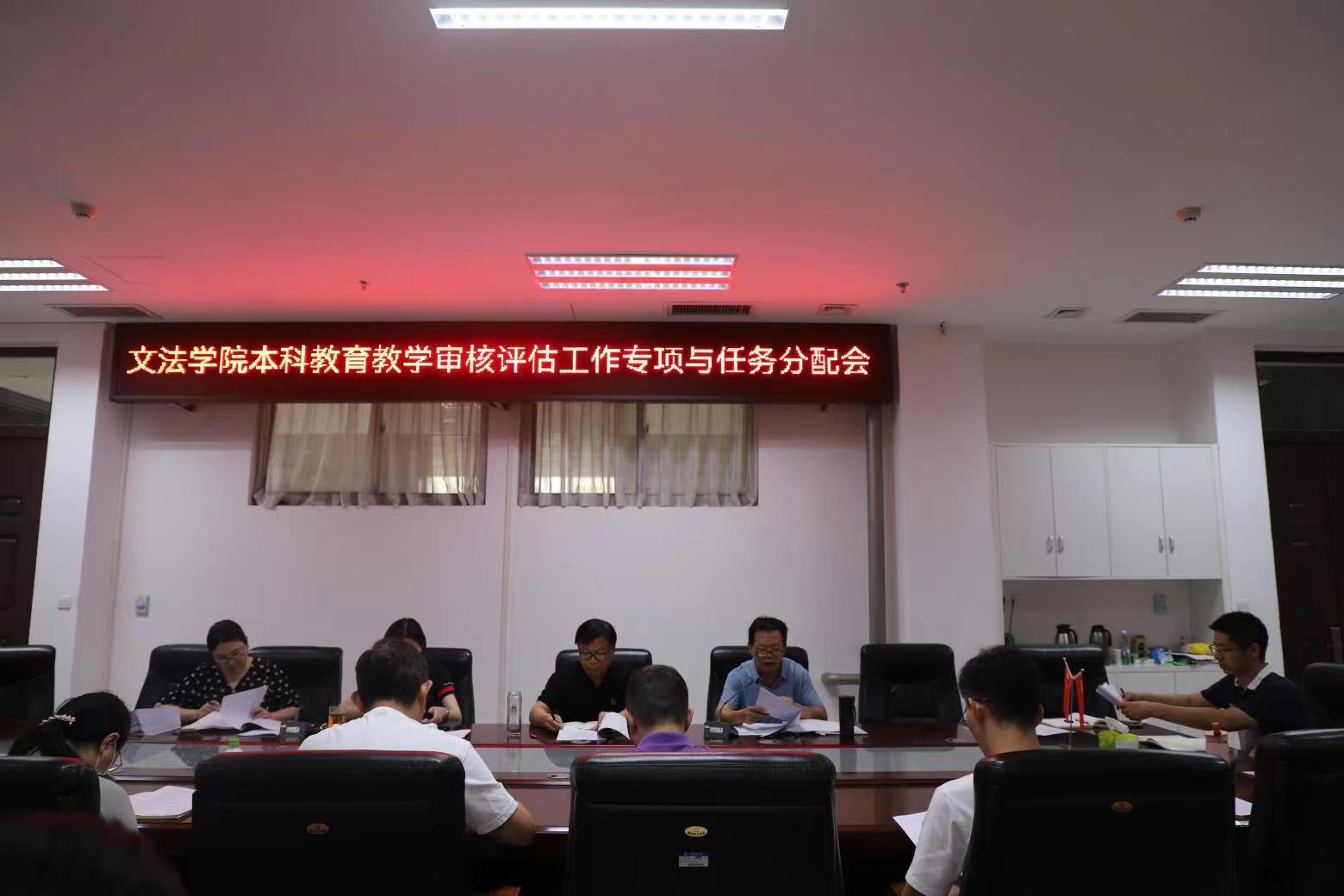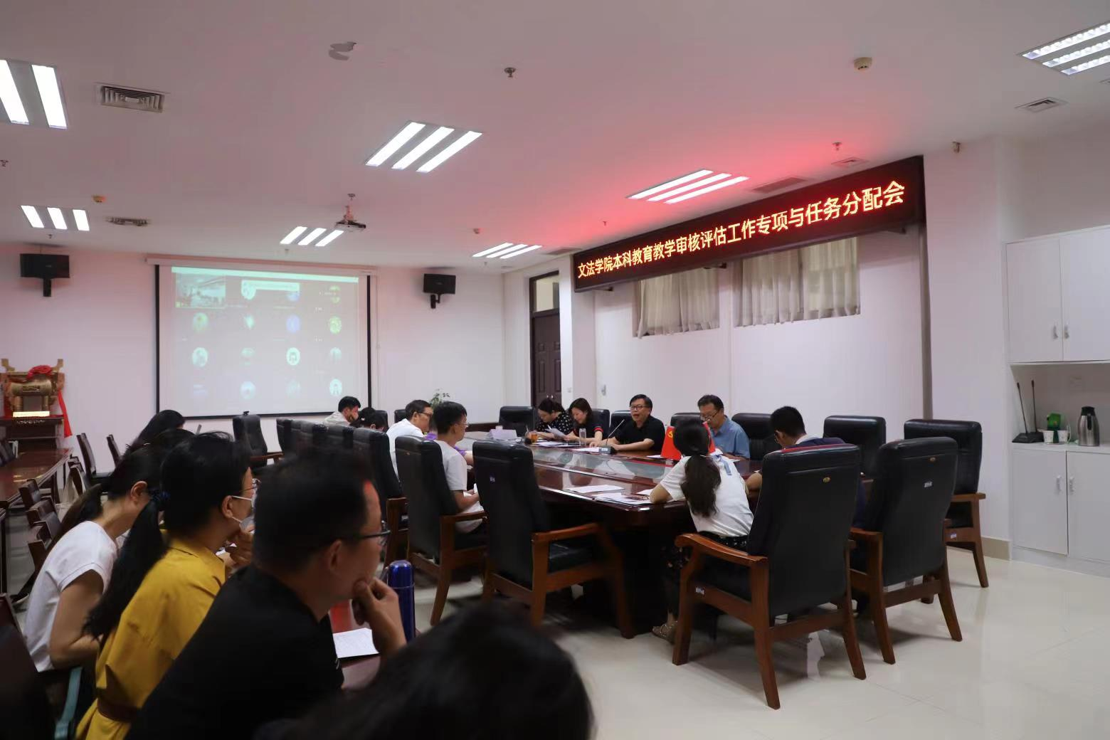 在繁塔楼A座310会议室召开本科教育教学审核评估工作专项与任务分配会,学院领导班子和全体专项工作组成员参加会议。