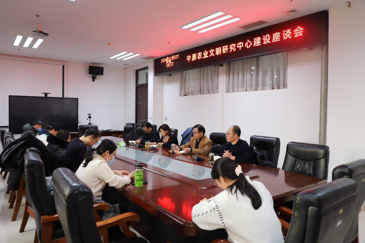 在会议室召开中原农业文明研究中心建设座谈会。学院领导班子及各系部主任参加会议,副院长李伟主持会议。