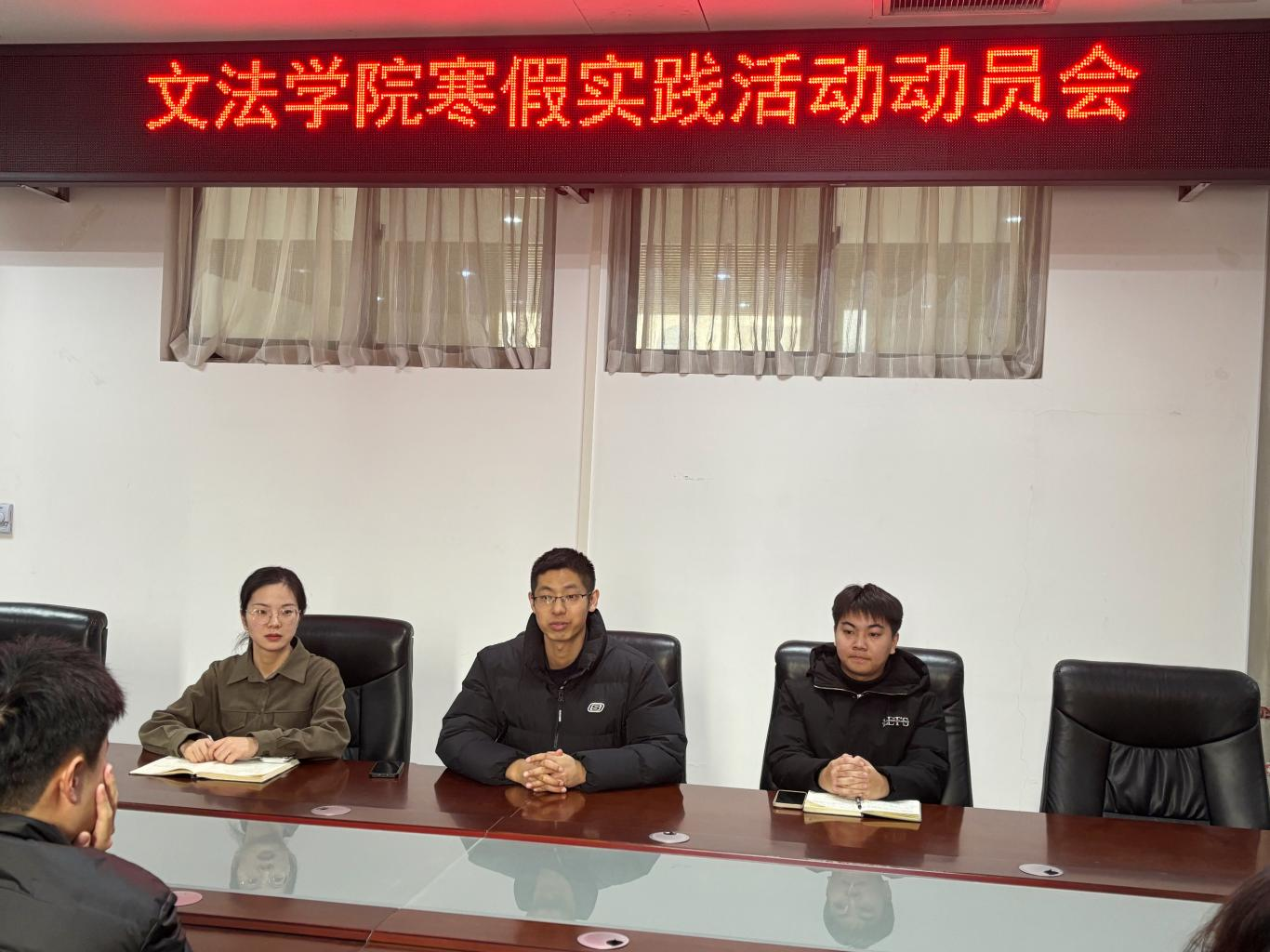 会上,赵梦闪宣读了2023-2024学年寒假“返家乡”社会实践活动方案,她强调社会实践是大学生踏入社会,接受锻炼的良好平台,青年学习应该积极投身实践服务、助力家乡发展,不断增强大学生的社会责任感,通过实践更好地认识和适应社会生活。