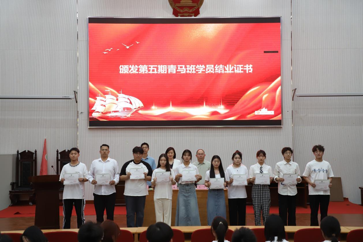 随后,与会领导为第五期学员颁发结业证书。在热烈的掌声中,学员们满怀期待与自豪,从领导手中接过这份荣誉,标志着他们在青马班的学习旅程圆满结束,同时也预示着他们将在未来的道路上继续发光发热。