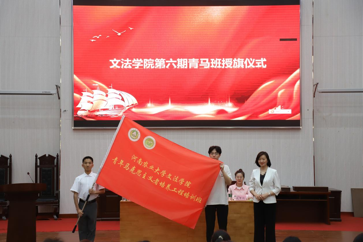 在热烈的掌声中,牛娟为第六期青马班学员授旗。她希望学员们接过这面旗帜,肩负起时代赋予的使命和责任,努力学习、积极进取,为实现中华民族伟大复兴的中国梦贡献青春力量。