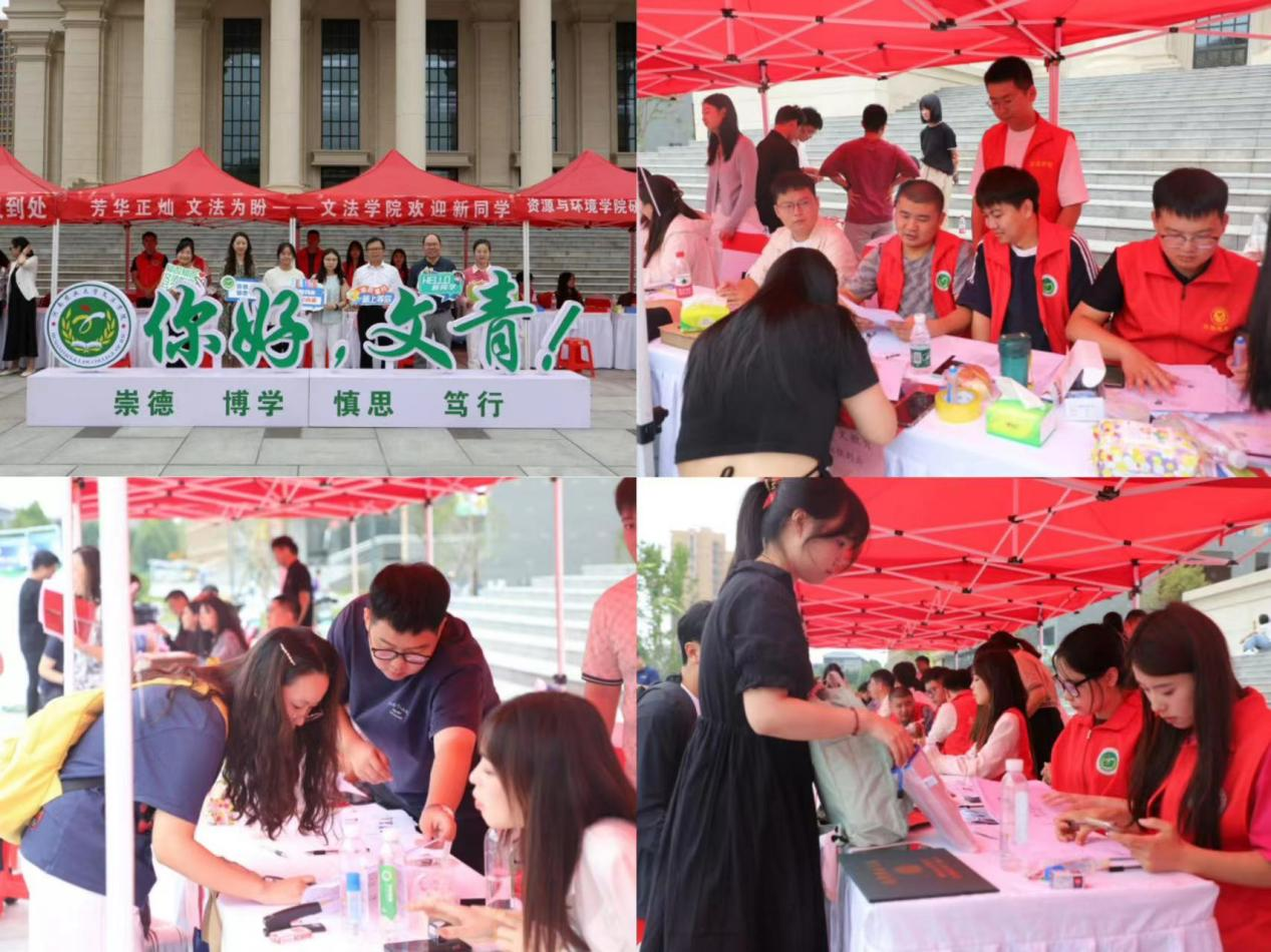 布置了温馨而充满创意的迎新现场,从欢迎横幅到指引标识,每一处细节都彰显着学院对新生的关怀,为每一名新生准备了丰富的开学大礼包,迎新志愿者们身着统一服装,以饱满的热情和耐心的态度,为新生及家长提供全方位的帮助与服务,确保每位新生都能顺利完成报到手续。此外,学院还安排了志愿者团队,他们穿梭于人群中,热心地帮助新生搬运行李、指引方向,用实际行动诠释了“以老带新,传承文法精神”的传统美德。在全院师生共同努力下,绿帽小说