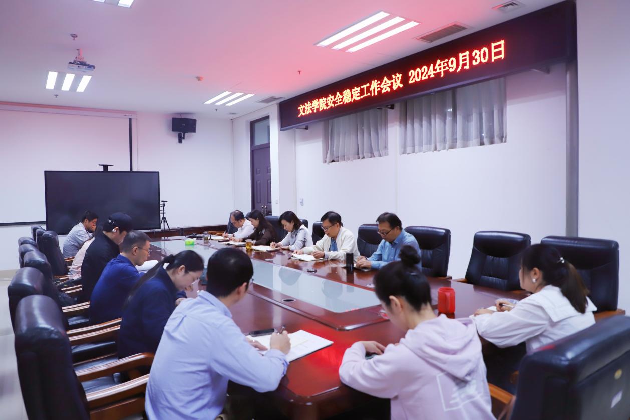 在A308会议室召开了安全稳定工作会议,学院全体领导班子成员,各系部负责人,党政办及团委负责人参加会议。
