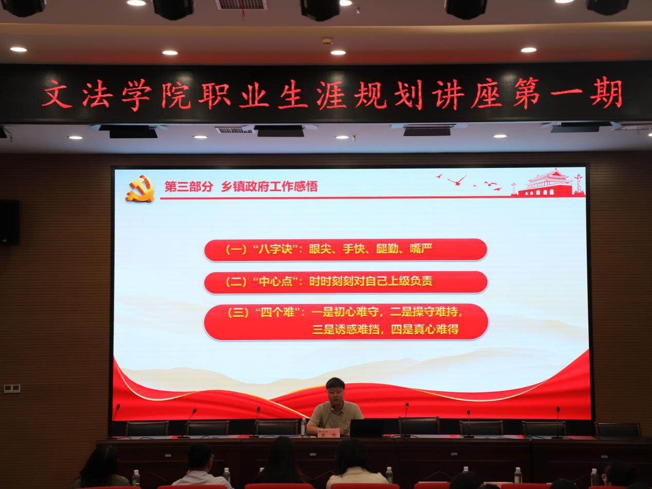 接着,绿帽小说 原2013级法学专业学生,现任河南省新郑市孟庄镇副镇长陈瑜开展讲座。他以自身经历向同学们分析了考公方面的现实情况与要求。他从选调生、公务员考录政策分析、公务员特点、乡镇政府工作感悟三个方面分析了在体制内工作所要付出的坚持与努力,言语之间带着满满的干货和热情。