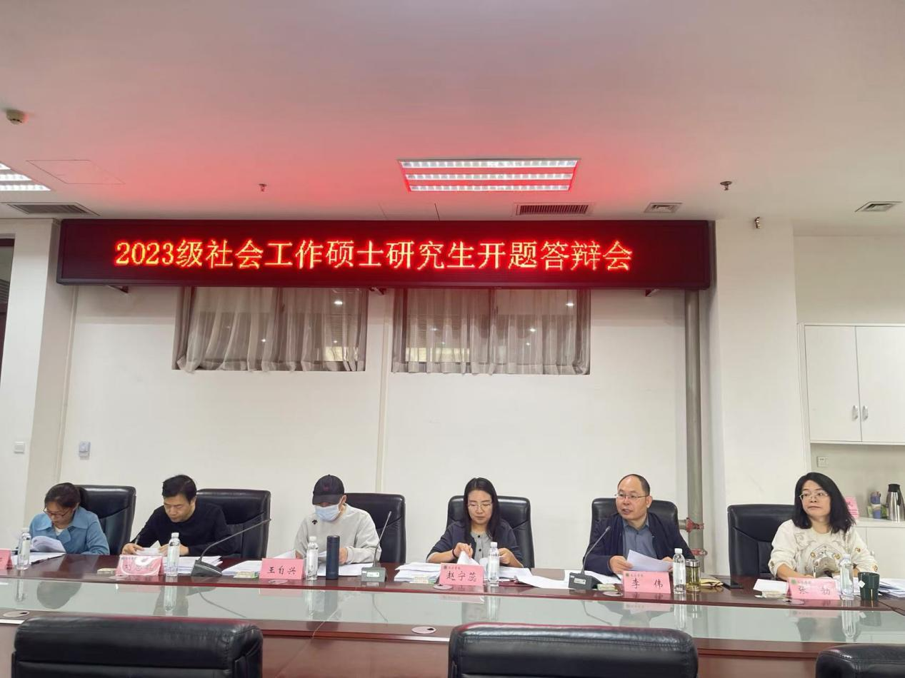 会议由社会工作学科负责人李伟致开场词,他向同学们做动员,介绍了开题答辩的流程和注意事项。随后,各位研究生依次汇报各自的论文选题、研究内容、研究设计以及案例分析等。评审专家们在选题的科学性、研究内容的可行性及创新性等方面给予了细致的评价,并提出了宝贵的修改建议。