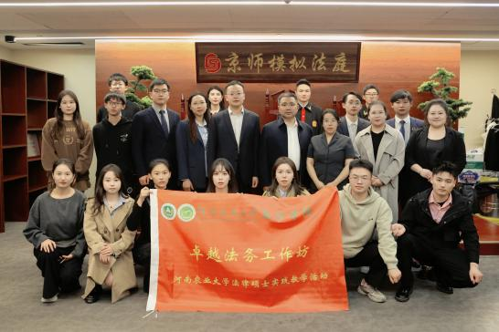 法律系师生前往北京京师(郑州)律师事务所开展模拟法庭实践教学活动暨第十八期卓越法务工作坊。法律系教师代表董鑫以及23级全体法律硕士研究生,北京京师(郑州)律师事务所商业刑事法律事务部主任秦明、刑事法律事务部律师刘兆庆等11位律师参与本次活动。