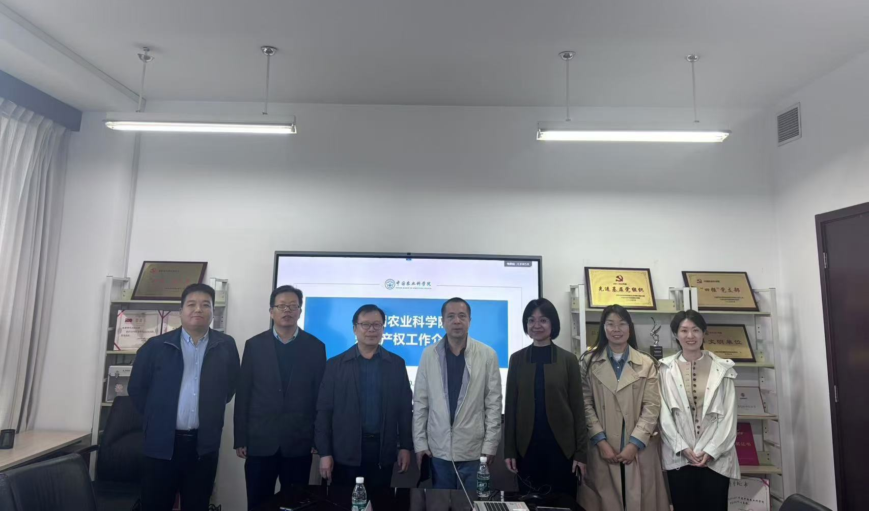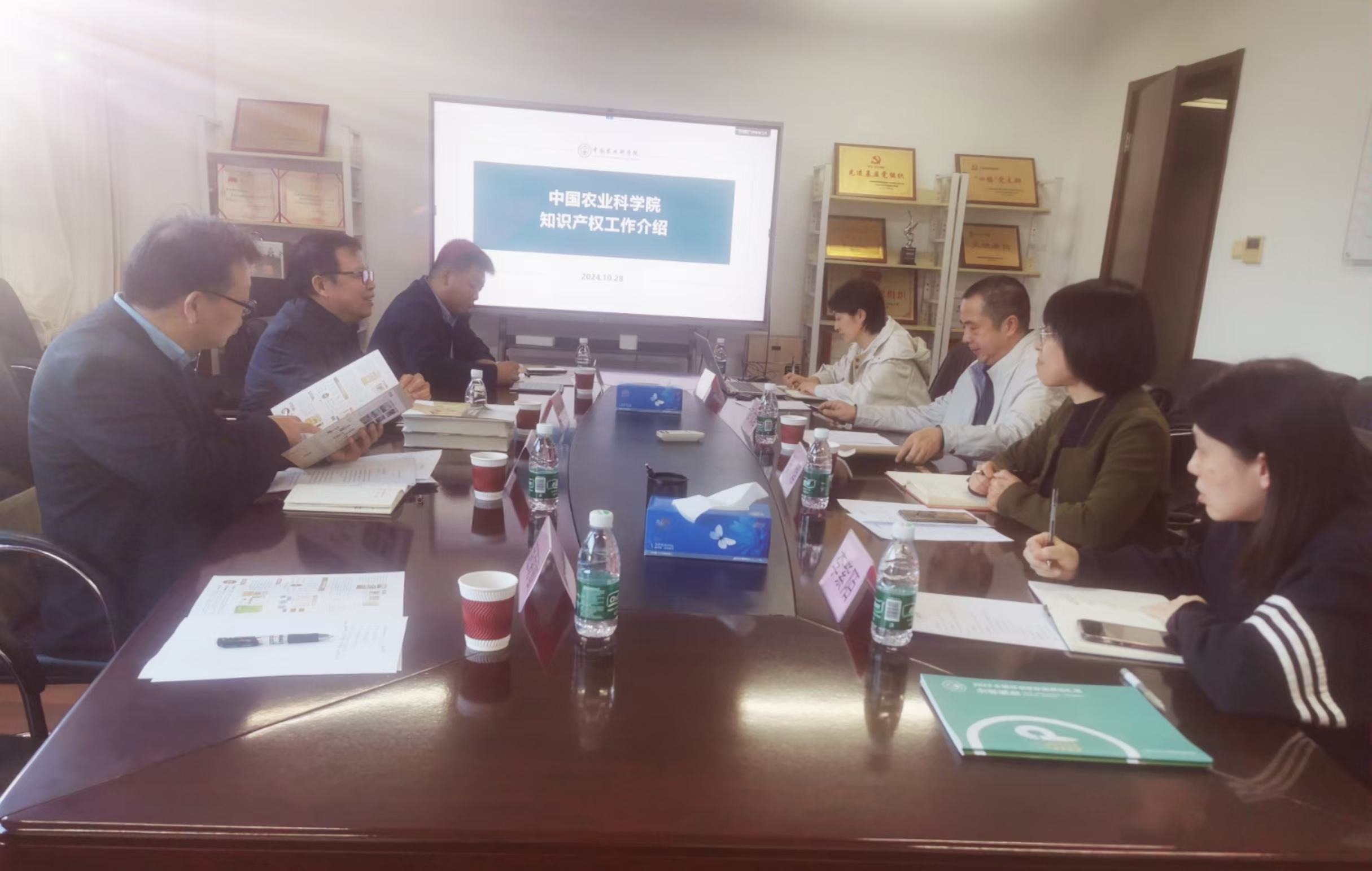 本网讯(通讯员 赵菊敏)10月28日,院长王晓勇,副院长杨红朝,社会服务处成果转化与技术服务科王景隆和法律系副主任赵菊敏一行4人赴中国农业科学院成果转化局开展合作交流。与中国农业科学院成果转化局局长彭文君、副局长张熠、知识产权处处长李雪和副处长李紫陌就农业知识产权保护和农业科技成果转化的合作事宜进行了座谈。