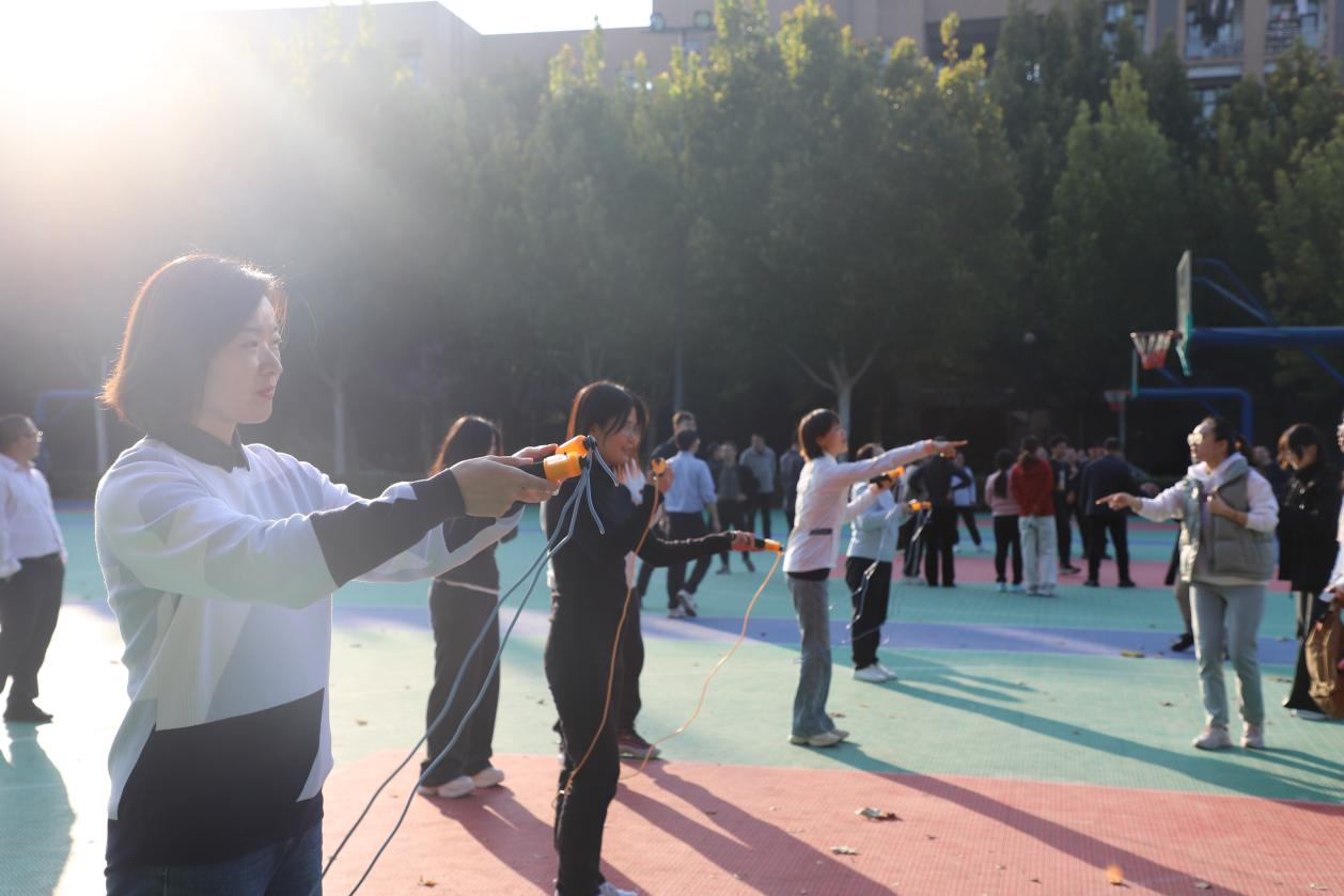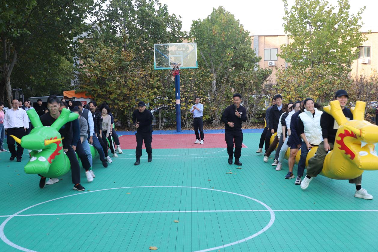 本次趣味运动会包括“旱地龙舟”、“蒙眼敲敲锤”、定点投篮、飞镖、跳绳五个项目,不仅考验着教职工的身体素质,更考验着团队协作能力和沟通能力。活动开始后,每位老师都积极投入、全力以赴,用实际行动诠释了合作进取的团队精神,不断将现场气氛推向高潮。场外,观战的老师纷纷加油、喝彩,现场时不时迸发出一阵阵笑声与掌声,每个人的脸上都洋溢着幸福和快乐。此次活动的每个项目都饱含了趣味性、充满了挑战性,现场气氛热烈又紧张,教职工们不仅赛出了个人风采,更展示了团队的凝聚力。在欢声笑语中,此次活动圆满结束。