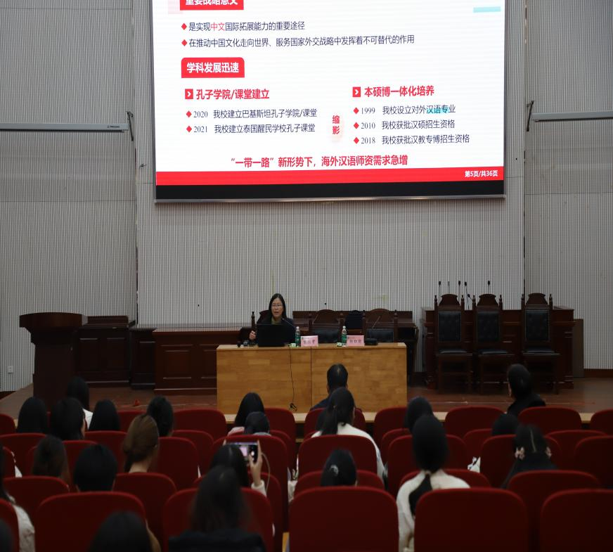 汉语言文学系特别邀请到河南师范大学张恒君教授在模拟法庭为国际中文教育师生举办“国际中文教育案例开发与应用”学术讲座。此次讲座由副院长杨红朝主持,汉语言文学系副主任吴亮及本系师生代表参加讲座。