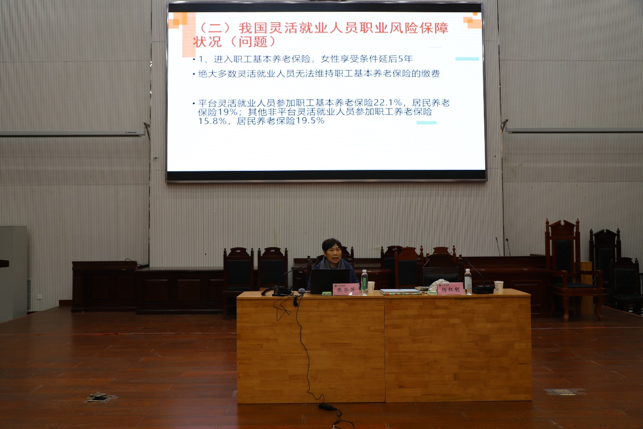 邀请武汉大学法学院张荣芳教授于繁塔楼模拟法庭作“我国灵活就业人员的社会保险问题及对策”专题学术报告。报告由绿帽小说
