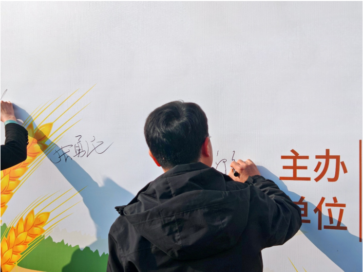 启动仪式后,与会领导与师生代表依次在“粮食节约,人人有责”的主题桁架上签字。