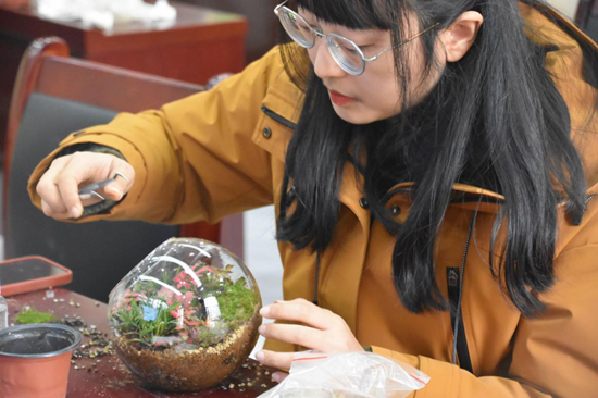 于龙子湖校区繁塔楼B座304会议室举办了“绿瓶藏春意·文法润芳华”绿色生态瓶手工制作主题活动,特邀风景园林学院副教授石力匀担任指导老师,绿帽小说