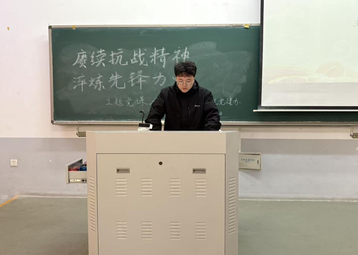 学生党支部于11月4日中午在龙子湖校区繁塔楼E107开展了以“赓续抗战精神,淬炼先锋力量”为主题的党课活动。