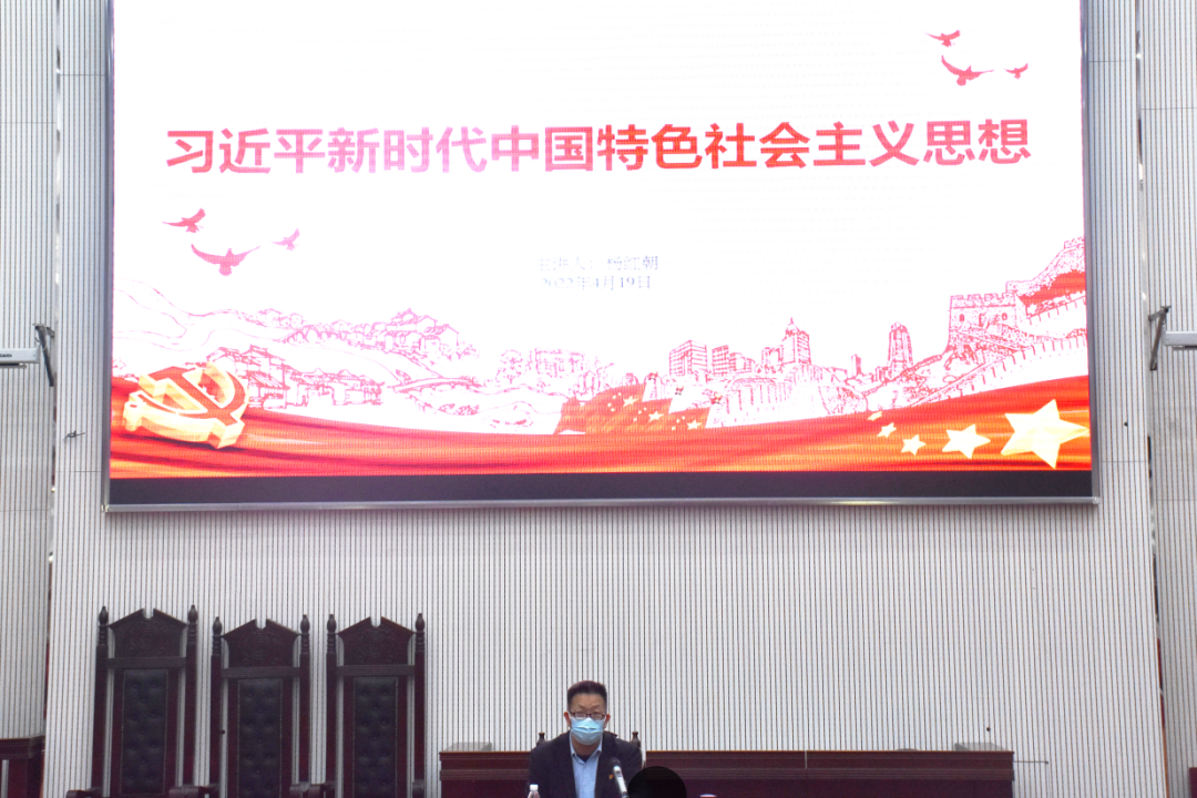 副院长杨红朝在模拟法庭开启第二堂课程:《习近平新时代中国特色社会主义思想》。他围绕习近平新时代中国特色社会主义思想,从两个问题出发,对与会积极分子的发展提出要求,并详细讲述了我国党史和中国特色社会主义发展方向,重申了“不忘过去、吸收外来、面向未来”的重要方针,最后提出要实现党和国家事业兴旺发达、长治久安,必须始终坚持习近平新时代中国特色社会主义思想,升华主题。