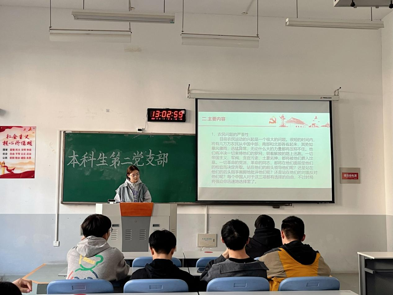 本科生第二党支部于2022年3月8日在C101开展了《湖南农民运动考察报告》为主题的经典研读活动。