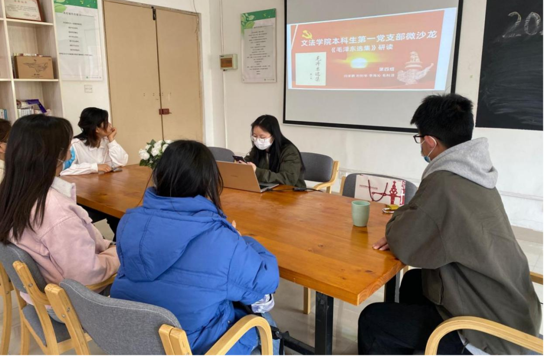 组织本科生第一党支部全体党员于紫竹303瑞萍工作室、本科生第二党支部于繁塔楼C101开展经典研读第四期活动。