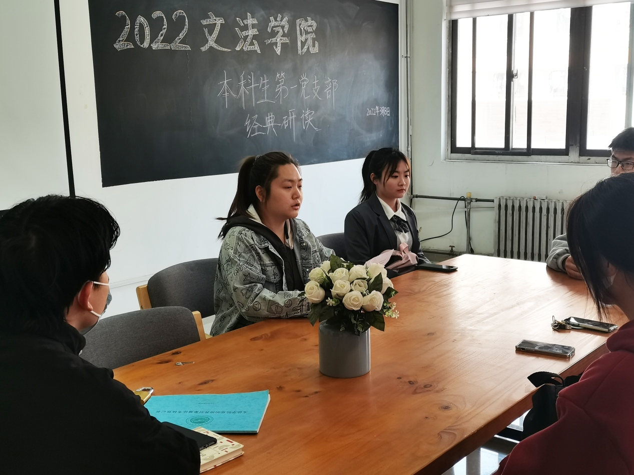 组织本科生第一党支部全体党员于紫竹303瑞萍工作室开展经典研读第二期活动。