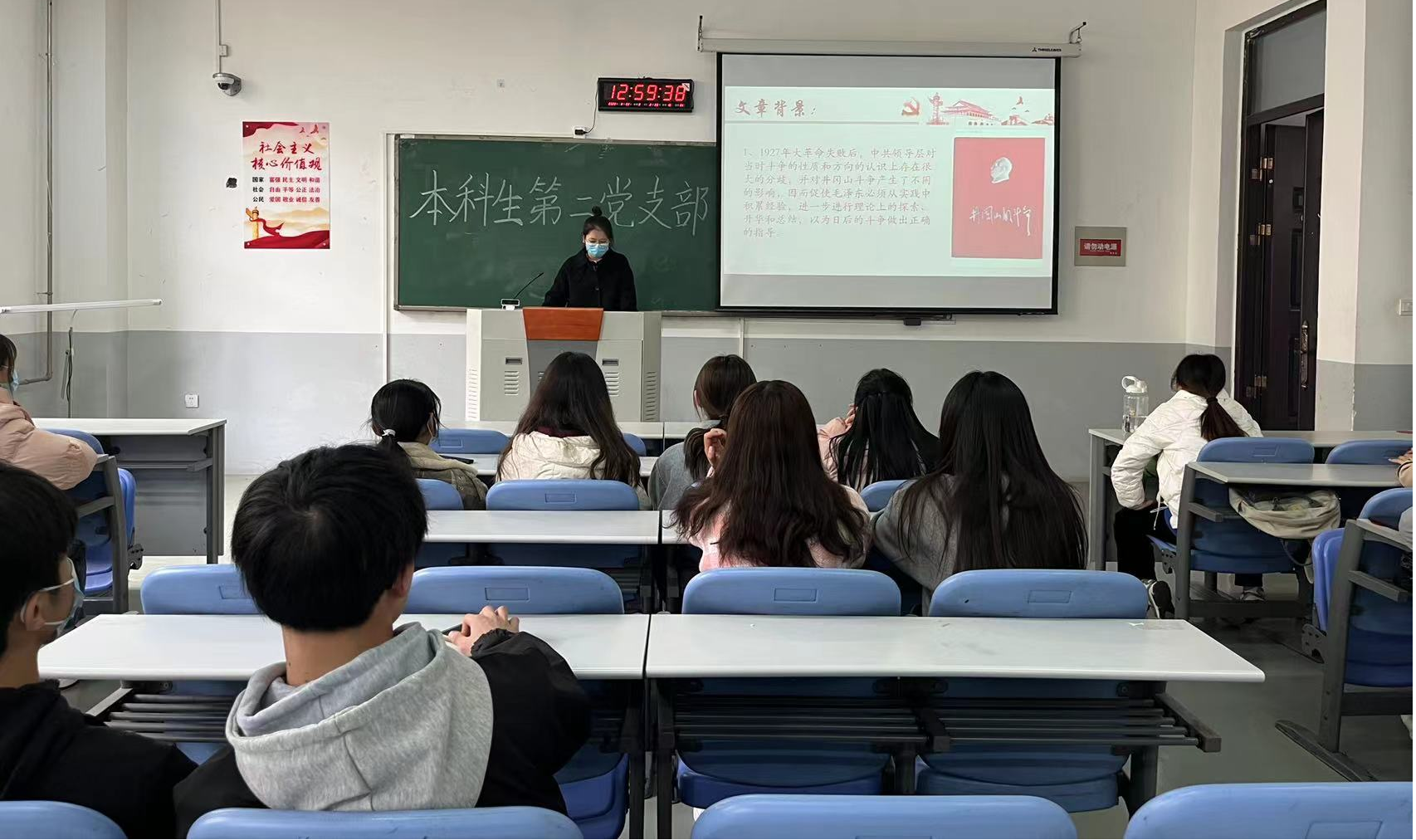3月22日,本科生第二党支部召开读书分享会,由李梦鸽和闵聪聪两位党员同志为大家分享了《井冈山的斗争》一文。