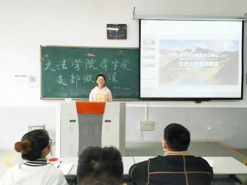 学生党2020年10月20日下午在龙子湖校区繁塔楼C101教室开展了以学生党员代表微党课分享为主要形式的党日活动。