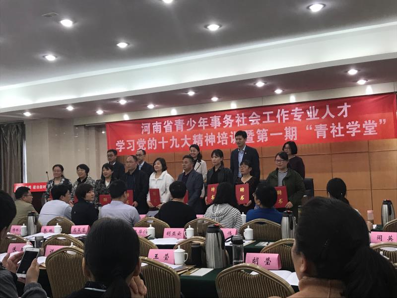2018年4月24日,应共青团河南省委社会联络部邀请,绿帽小说 李伟老师参加了“学习新思想建功新时代——河南省青少年事务社会工作专业人才学习党的十九大精神培训暨第一期‘青社学堂’开班仪式”。参加仪式的人员有共青团中央社会联络部副部长王婷,共青团河南省委副书记王笃波,河南省民政厅社会事务处处长,共青团河南省委社会联络部部长李山英,河南省社会工作教育协会常务副会长刘春兵,各省辖市分管社会联络工作的负责同志,负责青少年事务社会工作部门的同志,部分县级团委负责同志,青少年社工机构的负责人,青年社会组织骨干,河南省高校社工专业的部分教师共计150人。