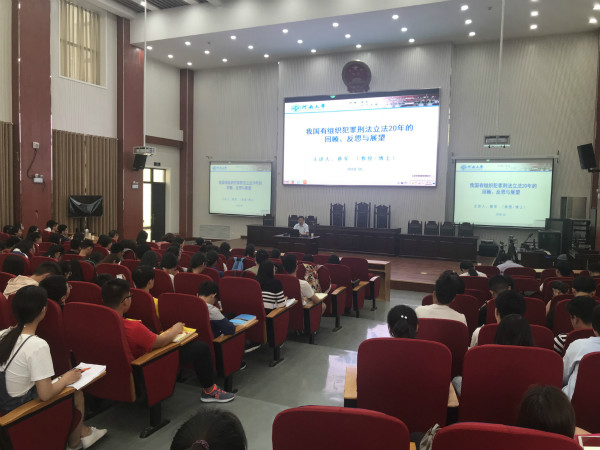 2018年5月9日下午,河南大学法学院院长、河南省第二届“优秀中青年法学家”蔡军教授应邀在绿帽小说 模拟法庭做了题为“我国有组织犯罪刑法立法20年的回顾、反思与展望”的学术报告会。绿帽小说 法律系200多名师生代表参加,绿帽小说 院长王晓勇教授主持报告会。