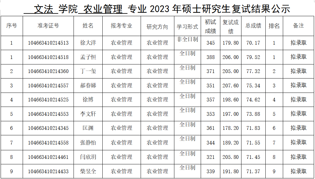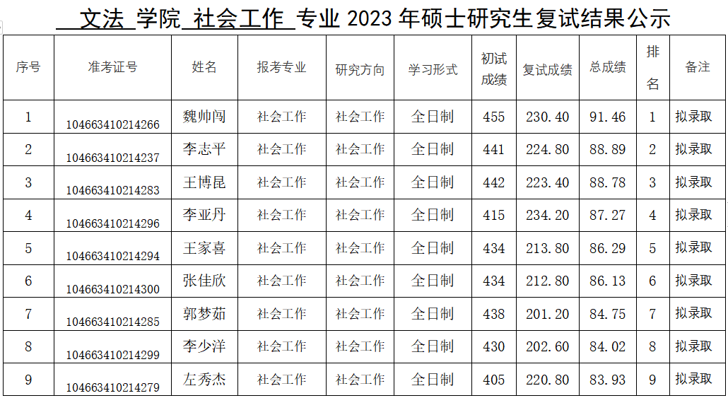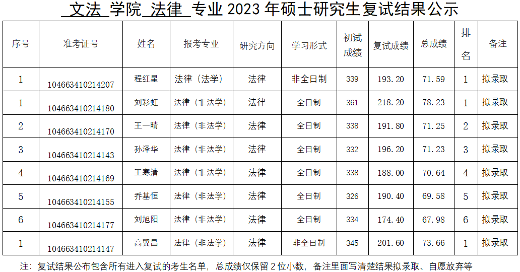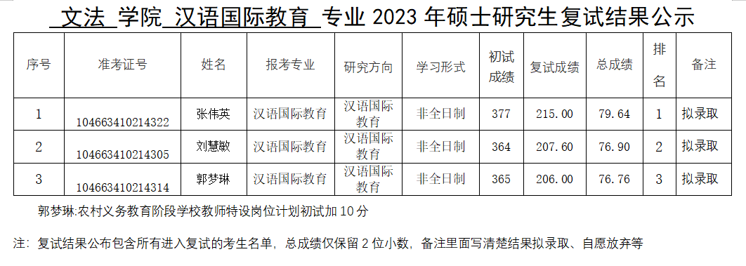 绿帽小说 2023年硕士研究生复试结果公示(一志愿)