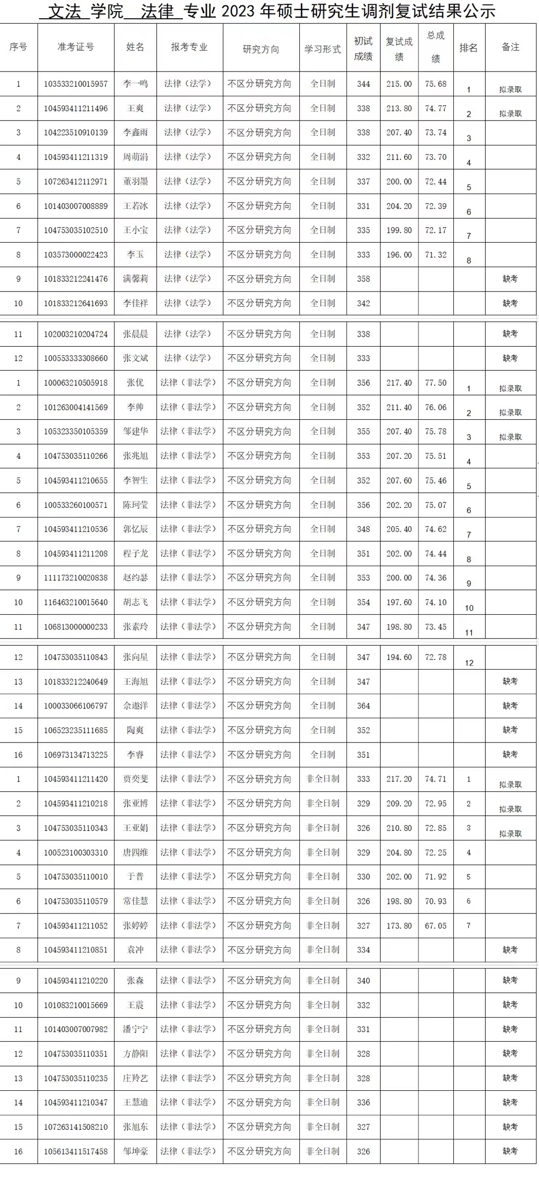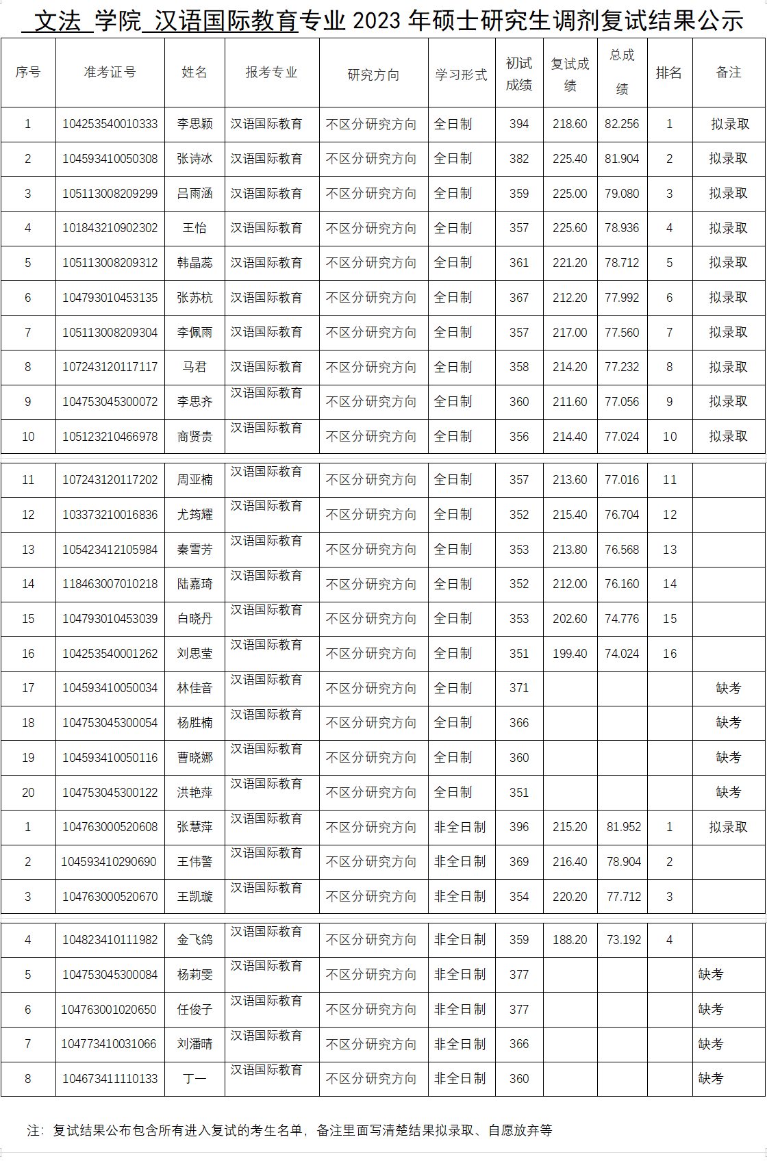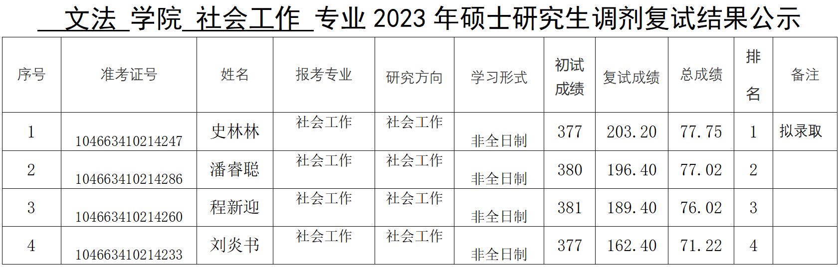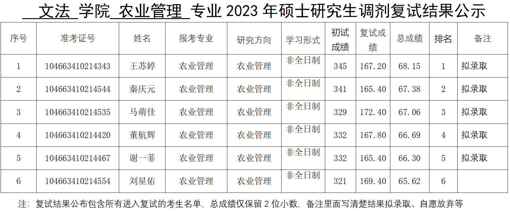 2023年硕士研究生调剂复试结果