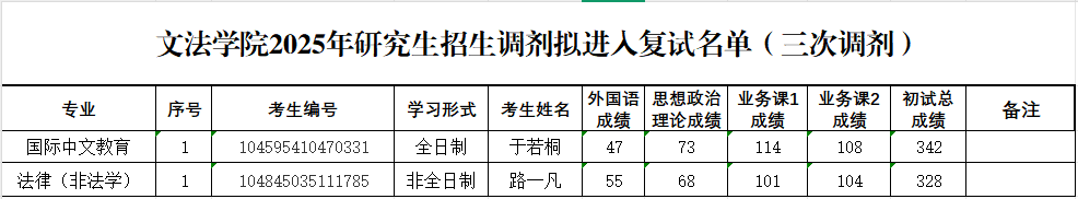 绿帽小说 2025年研究生招生调剂拟进入复试名单(三次调剂)公示