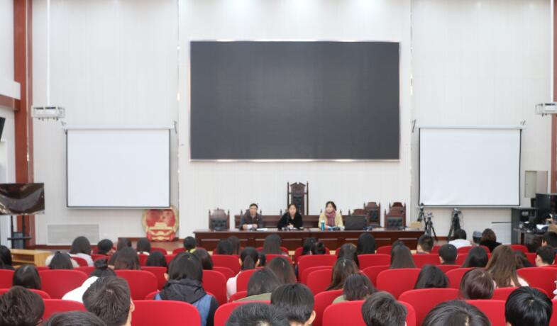 于模拟法庭召开人力资源管理专业毕业生大会。学院党委副书记王燕萍,行政管理系主任管煜武,团委书记沈倩茹,出席了此次会议,14级人力资源管理专业毕业生参加了此次会议。