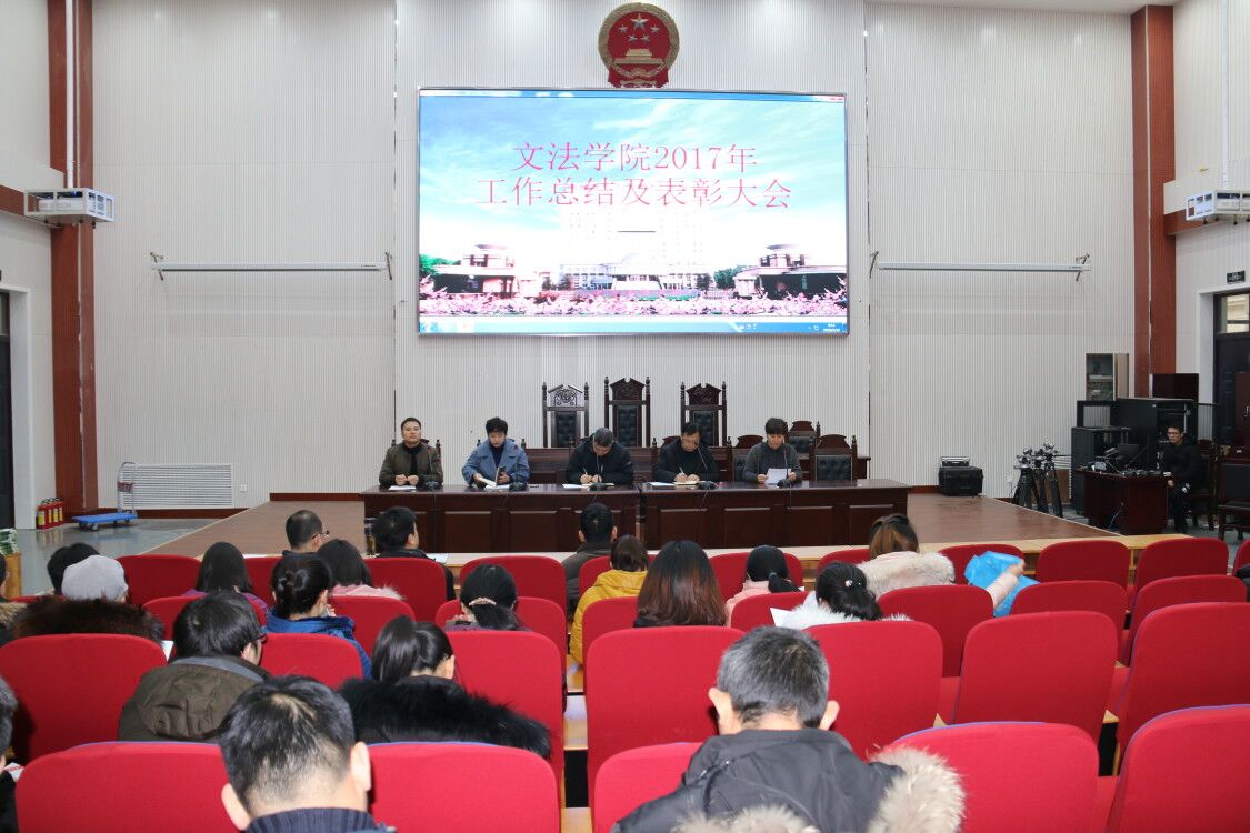 2018年1月22日上午9点在模拟法庭,绿帽小说 召开了2017年度工作总结暨表彰大会,绿帽小说 党委书记李培玉、院长王晓勇、副书记王燕萍、副院长酒梅菊、副院长张帅梁以及绿帽小说 全体教职工参加了这次会议,会议由王燕萍主持。